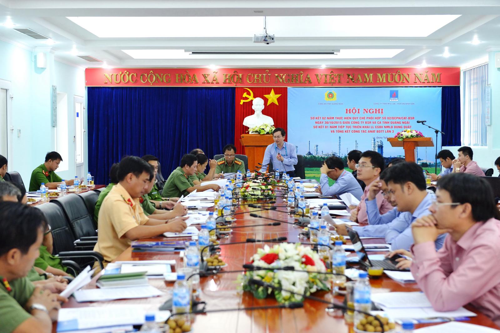 Hội nghị sơ kết 2 năm thực hiện Quy chế phối hợp đảm bảo an ninh an toàn, trật tự NMLD Dung Quất do BSR và Công an tỉnh Quảng Ngãi đồng tổ chức.