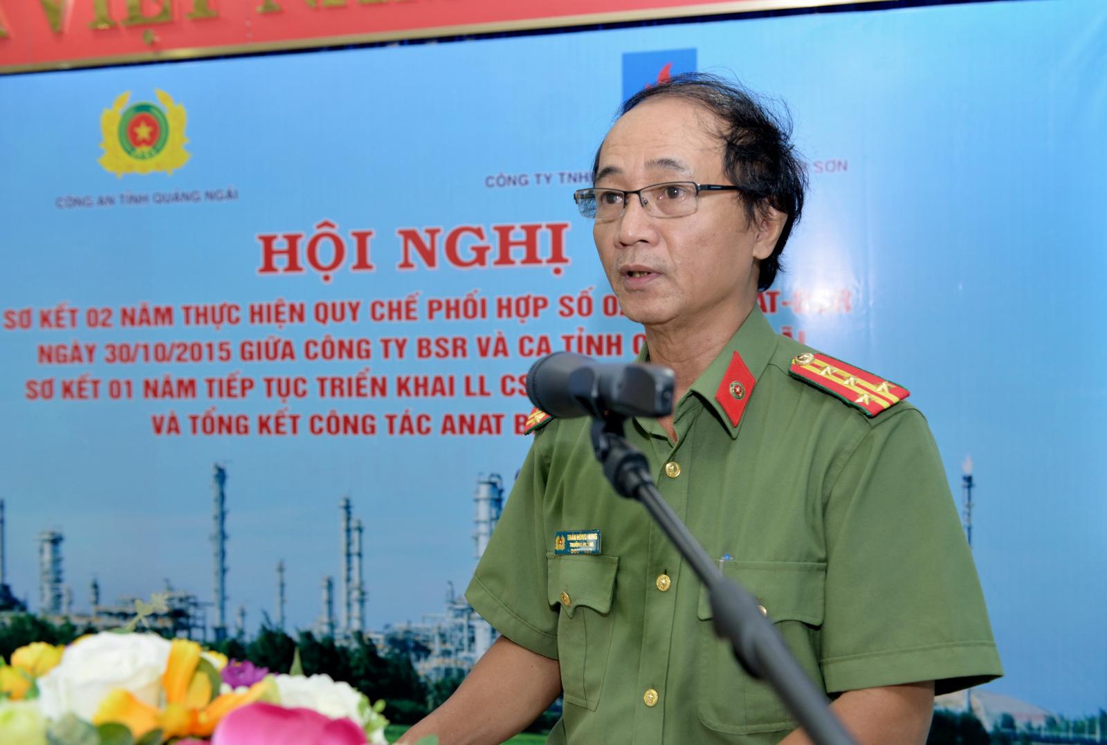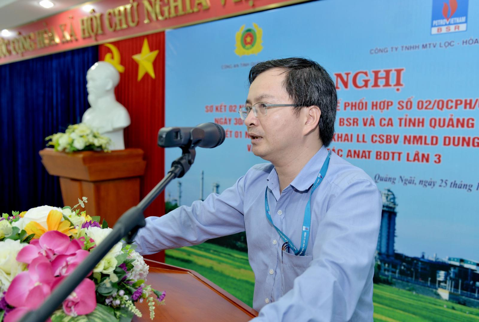 Hội nghị đã nghe báo cáo của đại diện Công an tỉnh Quảng Ngãi cũng như Công ty BSR về công tác phối hợp giữa 2 cơ quan trong việc đảm bảo an toàn tuyệt đối NMLD Dung Quất.