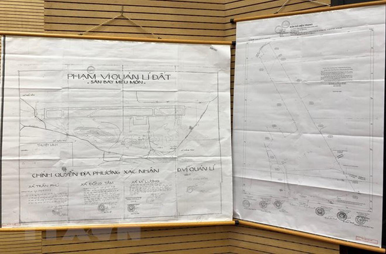 Bản đồ phạm vi quản lý đất sân bay Miếu Môn được công bố tại hội nghị chiều 27/8/2019. (Ảnh: Hoàng Dương/TTXVN)