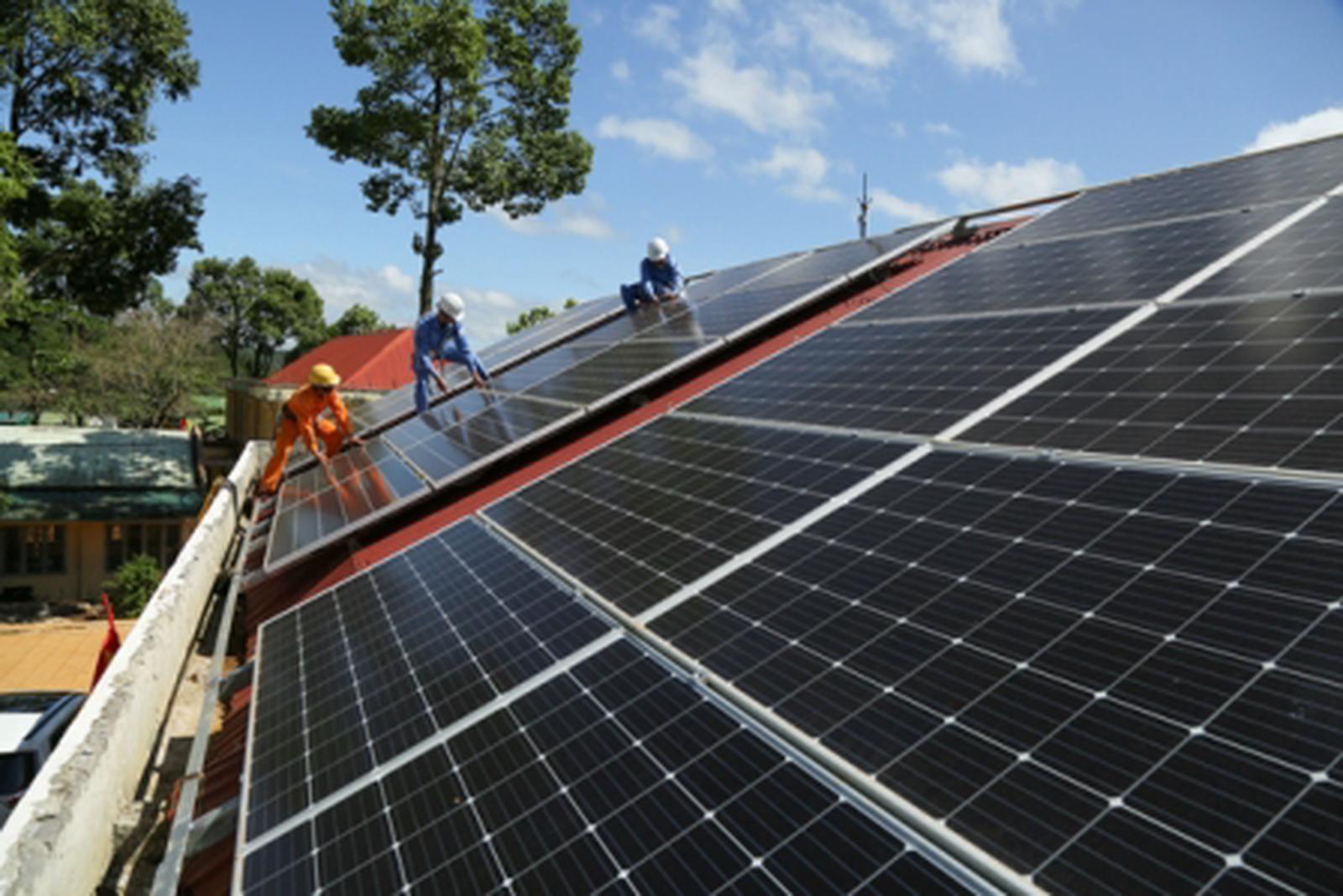 EVNCPC lắp đặt điện mặt trời áp mái tại các điểm trường. Ảnh: Đức Bình