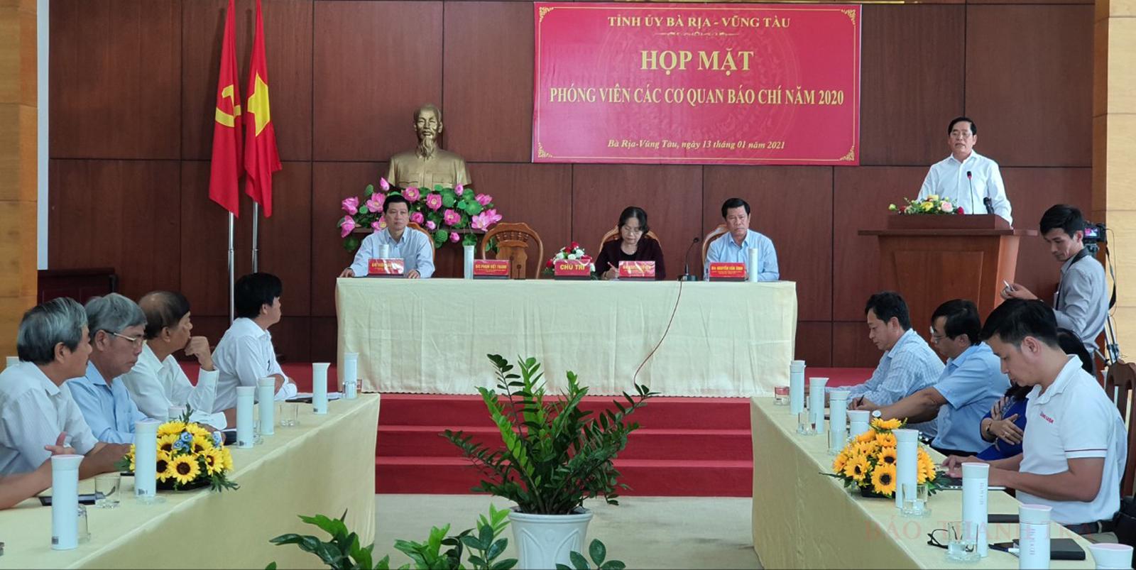 Chia sẻ tại buổi gặp mặt, Bí thư Tỉnh ủy BR-VT Phạm Viết Thanh cho biết, năm 2020 là một năm rất nhiều khó khăn đối với tỉnh do ảnh hưởng của dịch Covid-19, bão lũ miền Trung… Nhờ nỗ lực cả hệ thống chính trị và nhân dân toàn tỉnh, 6 tháng cuối năm kinh tế tỉnh BR-VT đã phát triển vượt bậc. Tổng kết cả năm 2020, kinh tế toàn tỉnh phát triển đạt 3.68%... Để đạt được những kết quả đó, ngoài nỗ lực của cả hệ thống chính trị và toàn xã hội thì vai trò của báo chí đóng góp rất to lớn…