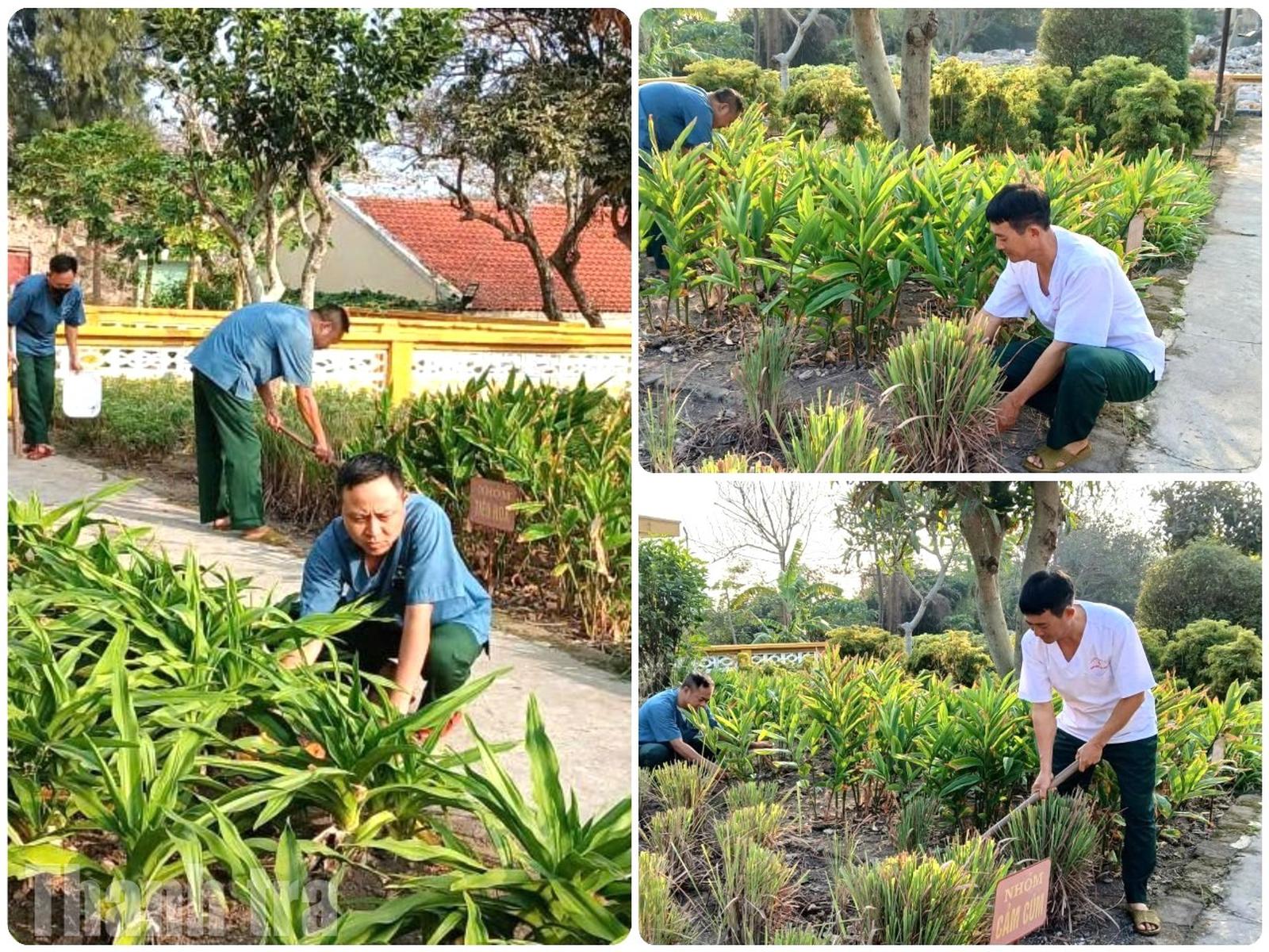 Giữa vị mặn mòi của biển, một vườn thuốc nam xanh tốt đã được gây dựng ngay tại bệnh xá. Ảnh: PV