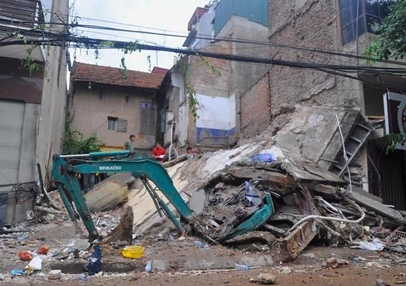 Ngay khi có giấy phép, anh Hùng đã thuê em vợ là Trần Tiến Tuấn (31 tuổi, ở Thanh Hóa) xây dựng lại nhà số 41. Anh Tuấn thuê Bùi Quốc Tùng (30 tuổi, ở Tây Hồ, Hà Nội) đào móng và vận chuyển phế thải. Khoảng 22 giờ ngày 3/8, anh Tùng thuê Trần Văn Minh lái máy xúc đến đào móng sâu khoảng 2 mét. Trong quá trình thi công thì xảy ra sập nhà số 43 liền kề.