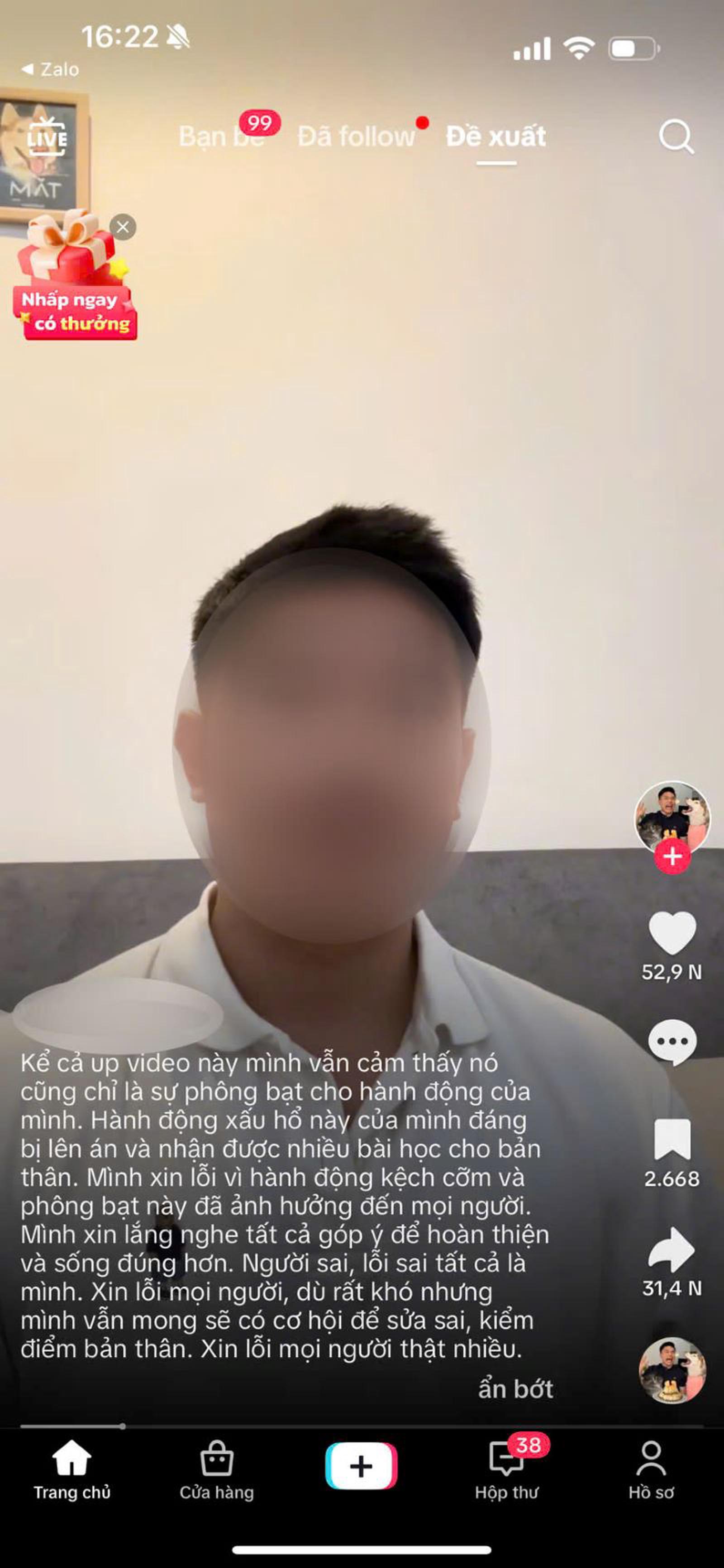 Tương tự một tài khoản trên mạng TikTok bị phát hiện đăng tải thông tin gian dối. Từ tài khoản TikTok Việt... đã đăng dòng trạng thái trong đó nói rõ: “Kể cả up video này mình vẫn cảm thấy nó cũng chỉ là sự phông bạt cho hành động của mình. Hành động xấu hổ này của mình đáng bị lên án và nhận được nhiều bài học cho bản thân. Mình xin lỗi vì hành động kệch cỡm và phông bạt này đã ảnh hưởng đến mọi người. Mình xin lắng nghe tất cả góp ý để hoàn thiện và sống đúng hơn. Người sai, lỗi sai tất cả là mình. Xin lỗi mọi người, dù rất khó nhưng mình vẫn mong sẽ có cơ hội để sửa sai, kiểm điểm bản thân. Xin lỗi mọi người thật nhiều”.