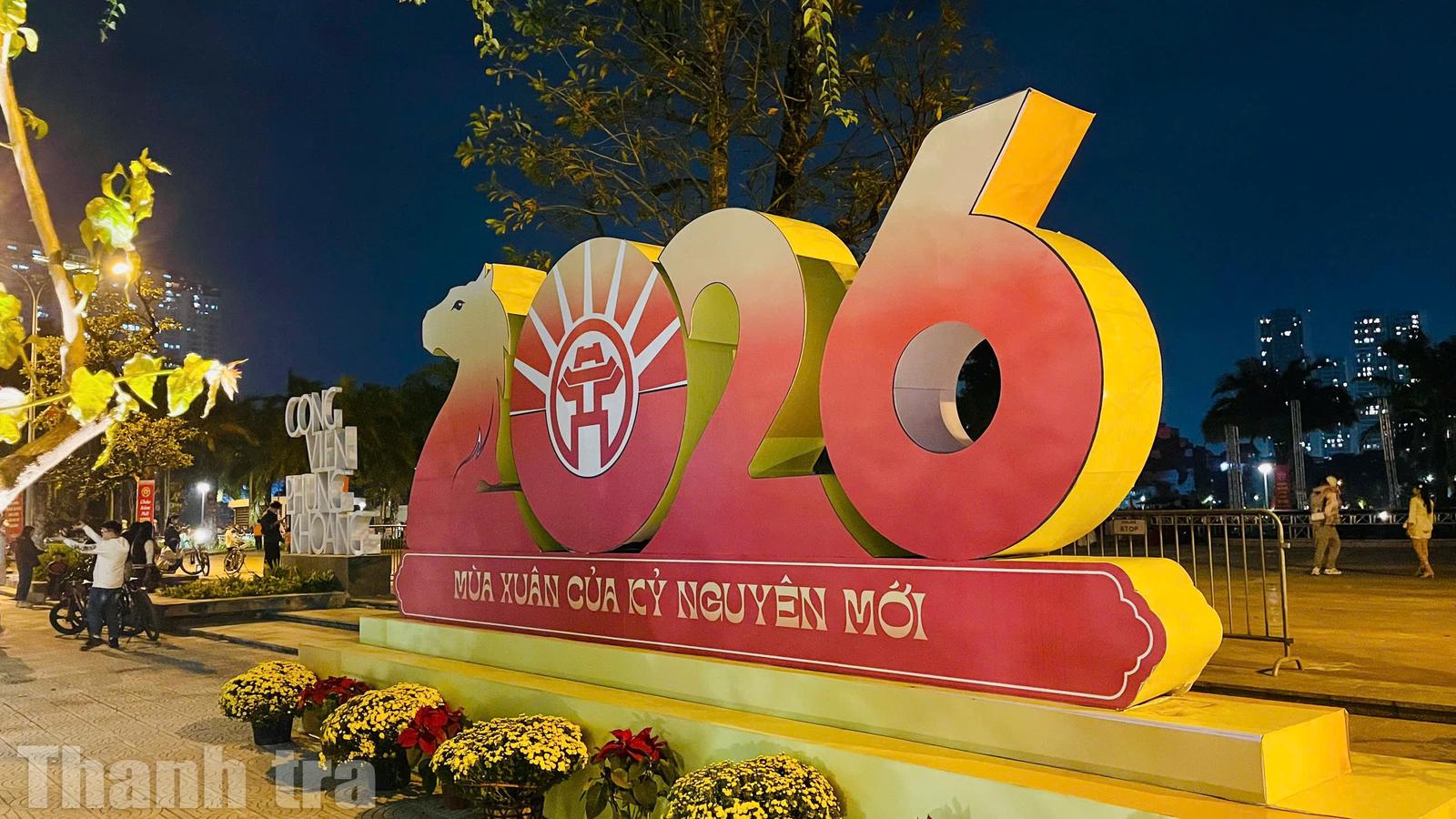 Không gian trang trí xuân nổi bật thu hút người dân và du khách dừng chân chụp ảnh tại các trận địa pháo hoa. Ảnh: Việt Hà