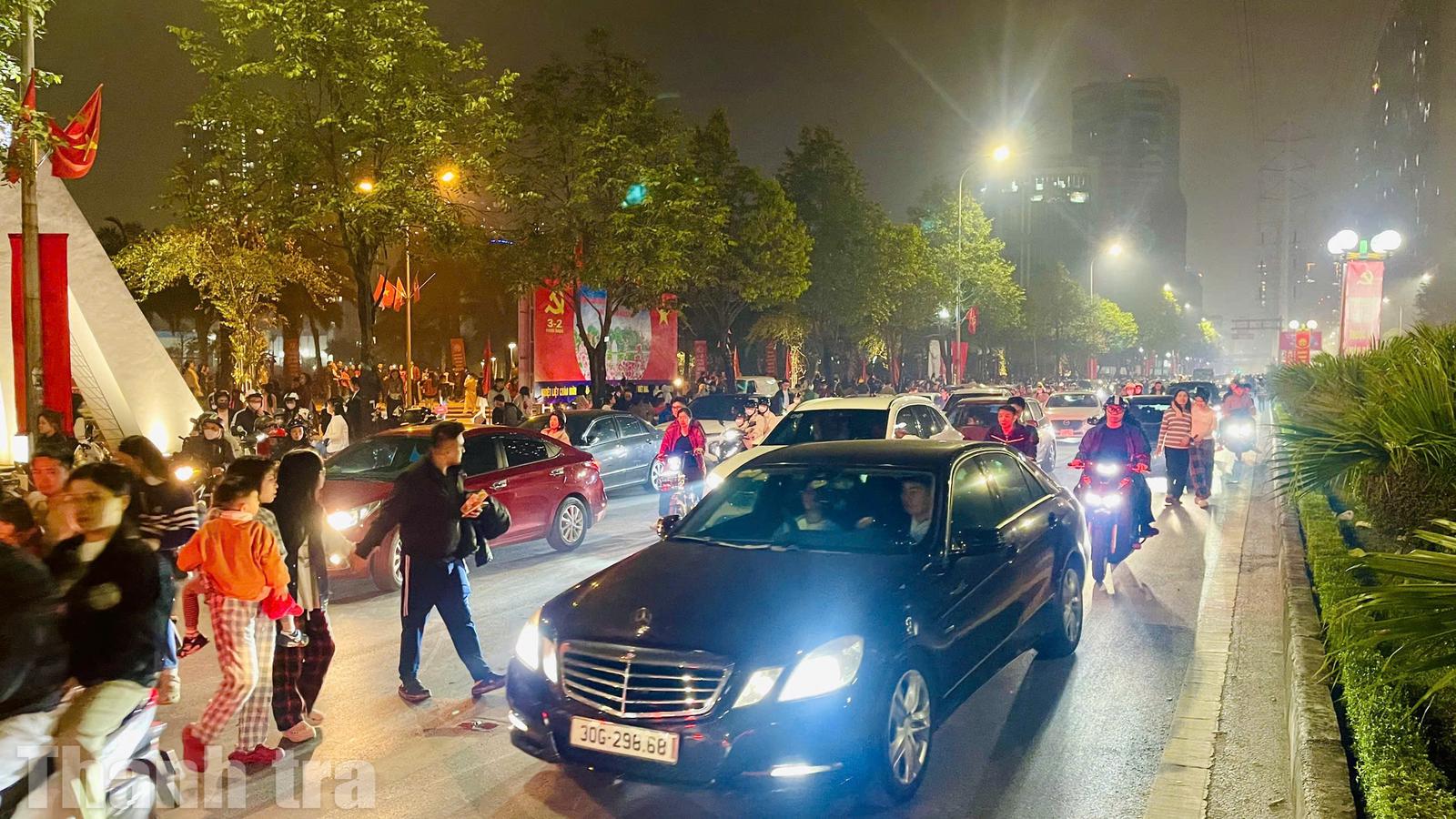 Dòng người tấp nập đến các điểm bắn pháo hoa trên địa bàn Thủ đô. Ảnh Việt Hà