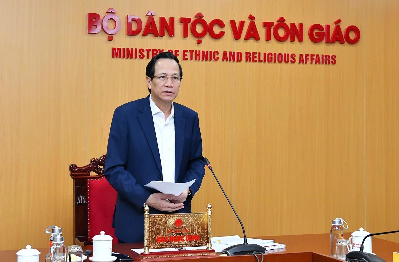 Ông Đào Ngọc Dung, Bộ trưởng Bộ Dân tộc và Tôn giáo, Thành viên Chính phủ chủ trì buổi làm việc. Cuộc làm việc được tổ chức theo hình thức trực tuyến từ điểm cầu Trụ sở Bộ Dân tộc và Tôn giáo đến các địa phương: Hà Nam, Thanh Hóa, Nghệ An.