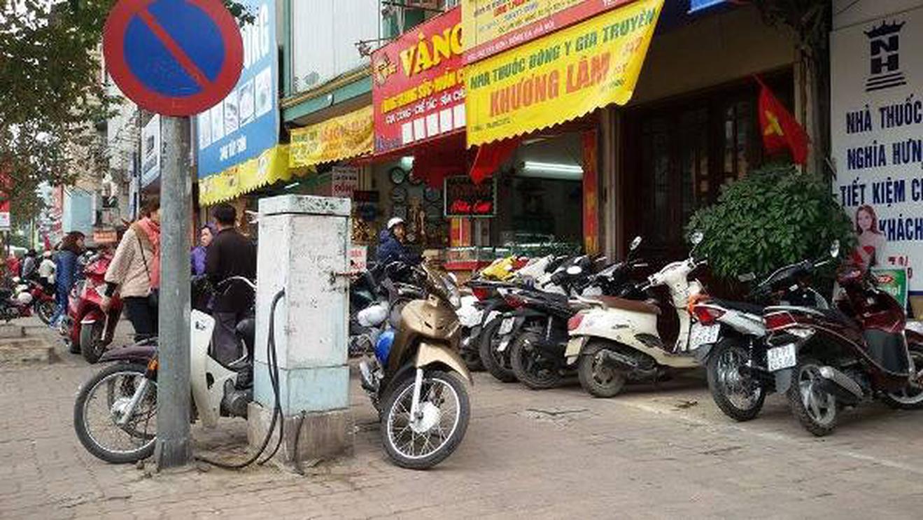 Trông giữ xe ở hè đường khu vực Đình Phúc Khánh. Ảnh: HO