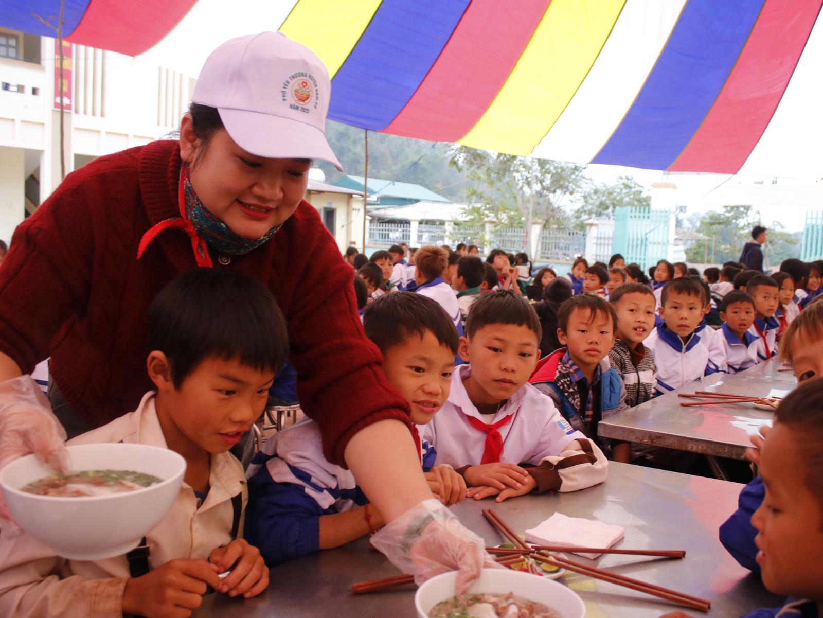 Trong ngày 10/2, chương trình đã nấu và phát miễn phí hàng nghìn bát phở cho các em học sinh. Cụ thể, tại xã Nậm Tin đã nấu 1.370 bát phở, tại xã Nậm Nhừ đã nấu 1.600 bát phở, tại xã Nà Khoa đã nấu 1.200 bát phở…