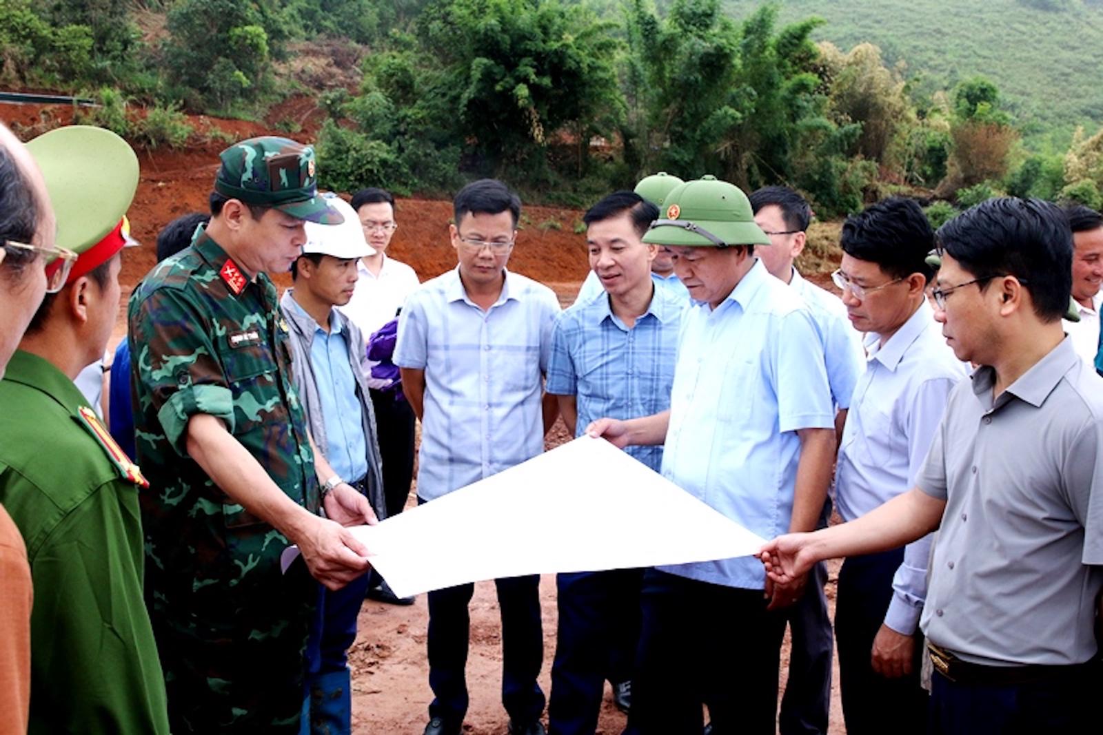 Lãnh đạo tỉnh Điện Biên kiểm tra thực địa vị trí mặt bằng sắp xếp, ổn định dân cư tại bản Tìa Mùng, xã Tìa Dình. Ảnh: Tuyết Anh