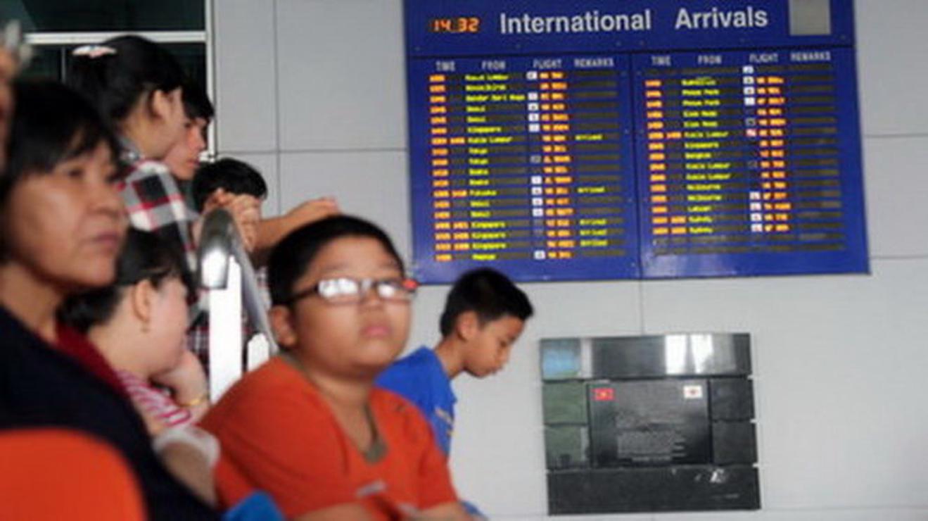 Thân nhân hành khách đợi ở sân bay Tân Sơn Nhất trong lúc vẫn còn nhiều chuyến bay chưa xếp được lịch hạ cánh (ảnh chụp lúc 13g55 ngày 20-11). Ảnh: Mậu Trường