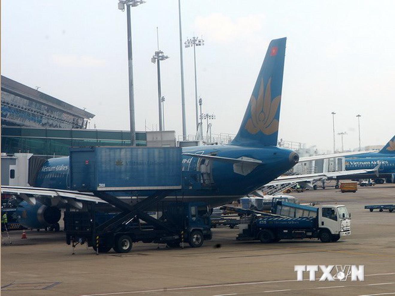 Máy bay của Vietnam Airlines tại sân bay quốc tế Tân Sơn Nhất. Ảnh: Huy Hùng/TTXVN