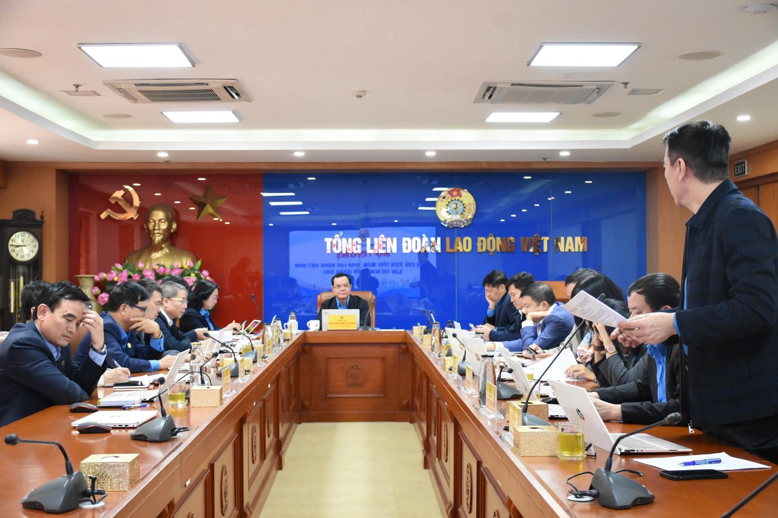 Tại hội nghị, các đồng chí Ủy viên Đoàn Chủ tịch đã thảo luận, đóng góp ý kiến chi tiết vào tiêu đề, nội dung báo cáo; các chỉ tiêu, nhiệm vụ, giải pháp đề ra trong nhiệm kỳ mới, như: Chỉ tiêu về phát triển đoàn viên công đoàn; chỉ tiêu về nhà ở cho công nhân; giải pháp nâng cao năng suất lao động cho công nhân, lao động...