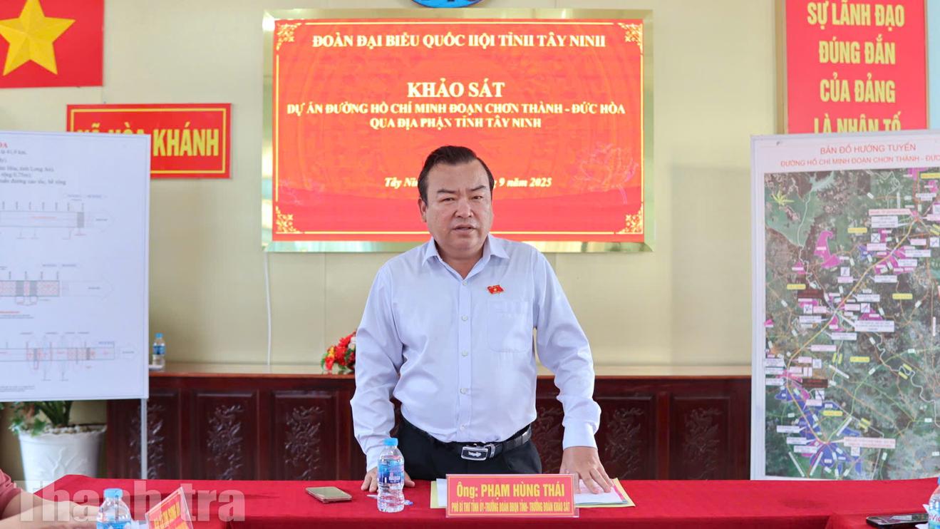 Kết luận tại buổi làm việc, Phó Bí thư Tỉnh ủy, Trưởng đoàn ĐBQH tỉnh Tây Ninh Phạm Hùng Thái ghi nhận nỗ lực của các đơn vị, đồng thời yêu cầu địa phương đẩy nhanh tiến độ giải phóng mặt bằng, tạo điều kiện cho nhà thầu thi công.