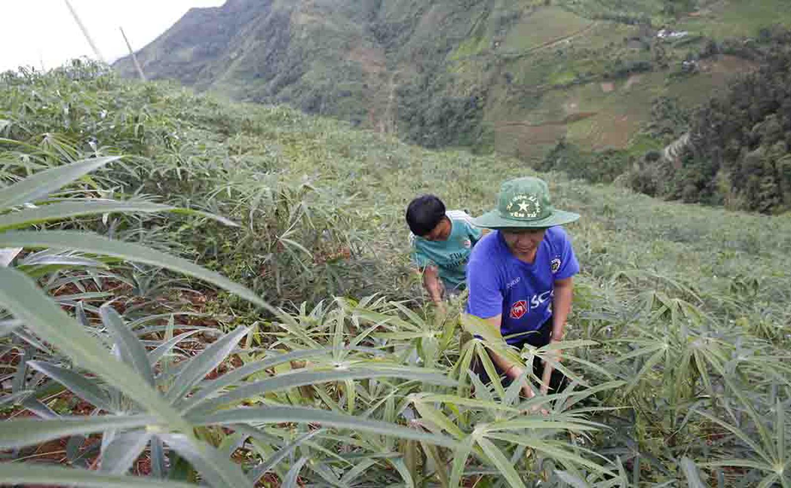 Nhân dân xã Mù Sang chăm sóc cây sắn. Ảnh: Phong Lâm