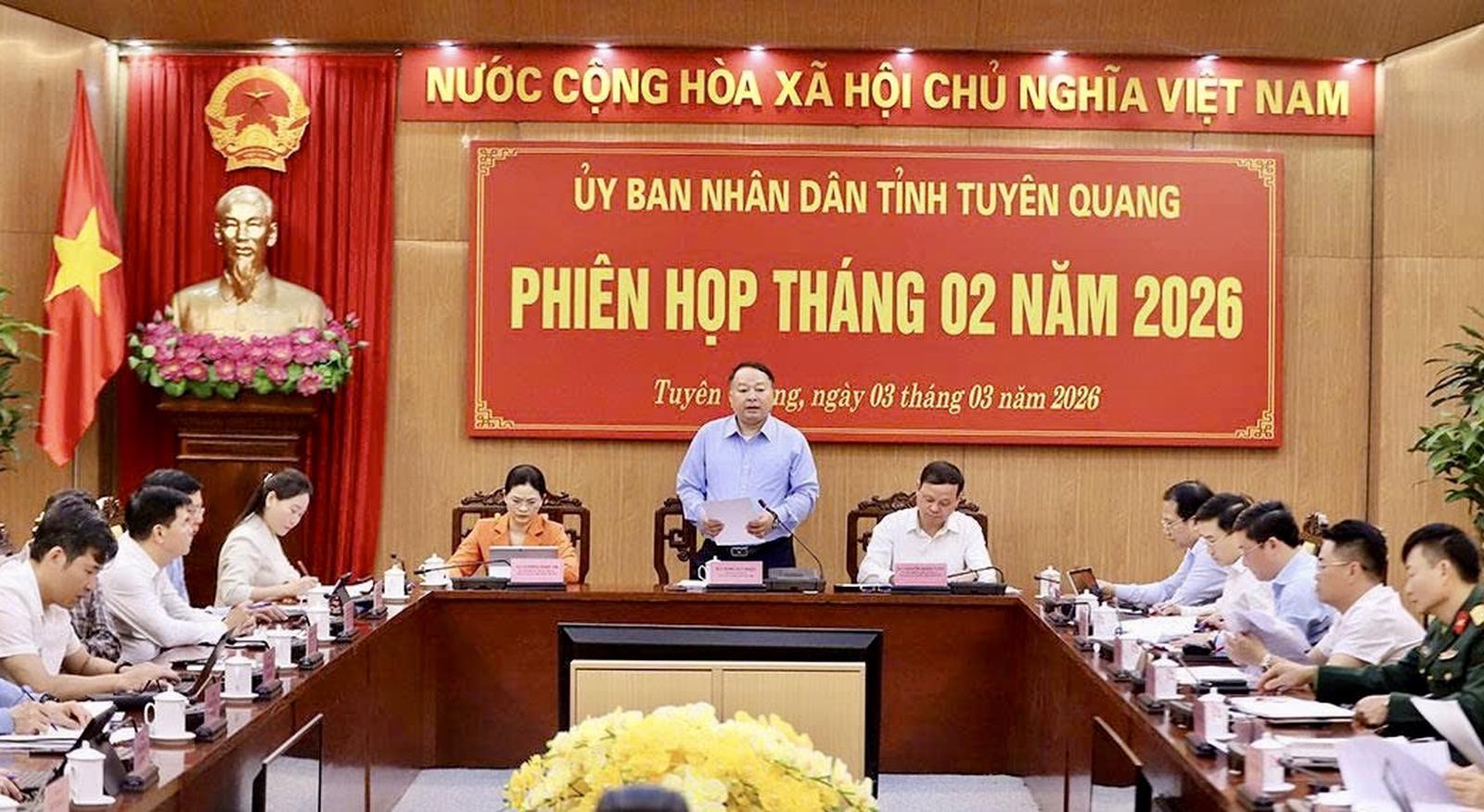 Sáng 3/3, UBND tỉnh Tuyên Quang đã tổ chức phiên họp thường kỳ tháng 2/2026 nhằm đánh giá tình hình thực hiện nhiệm vụ phát triển kinh tế - xã hội và triển khai các nhiệm vụ trọng tâm thời gian tới.