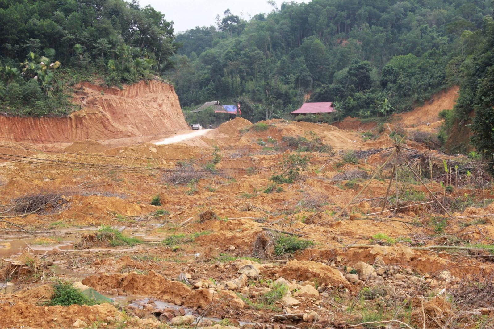 Dưới đống đất này từng có những ngôi nhà sàn 2 tầng khang trang của các hộ dân thôn Át Thượng. Ảnh: Bùi Bình