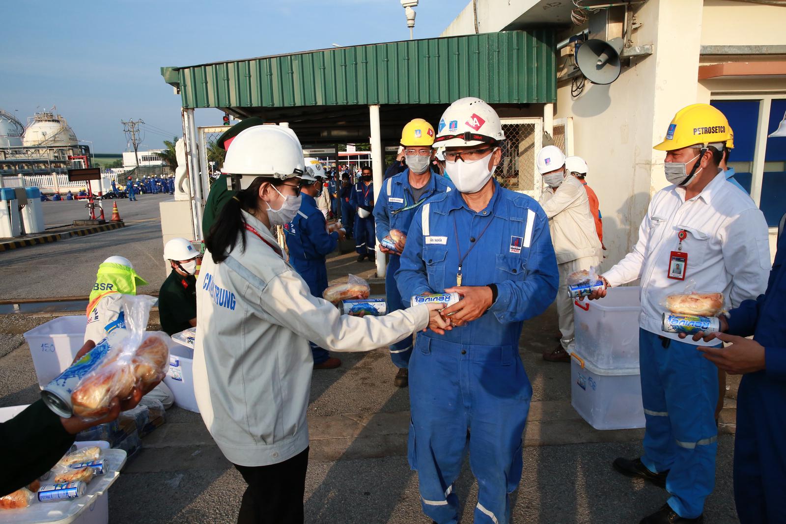 Nguyễn Thu Hà (PVS) hỗ trợ phát đồ ăn nhanh cho nhân sự nhà thầu