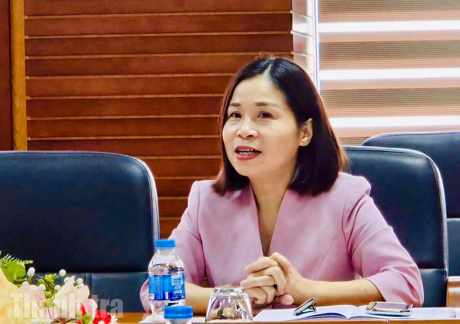Phó Hiệu trưởng, Chủ tịch Công đoàn Trường Cán bộ Thanh tra Phạm Thị Thu Hiền phát biểu tại hội nghị. Ảnh: TH