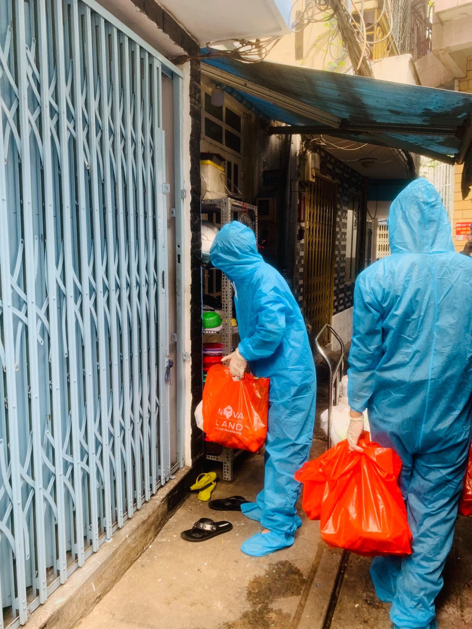Nhận phần quà, cô Hải (phường 16, quận Gò Vấp) rưng rưng chia sẻ: “Gia đình có hai vợ chồng và con gái hiện ở xa. Năm ngoái chồng mổ cột sống, bán chè ngoài chợ để trang trải cuộc sống. Mấy tháng nay dịch bệnh không có thêm thu nhập vì không còn chợ để bán nữa. Phần quà giúp gia đình no bụng để cùng chống dịch với mọi người”.