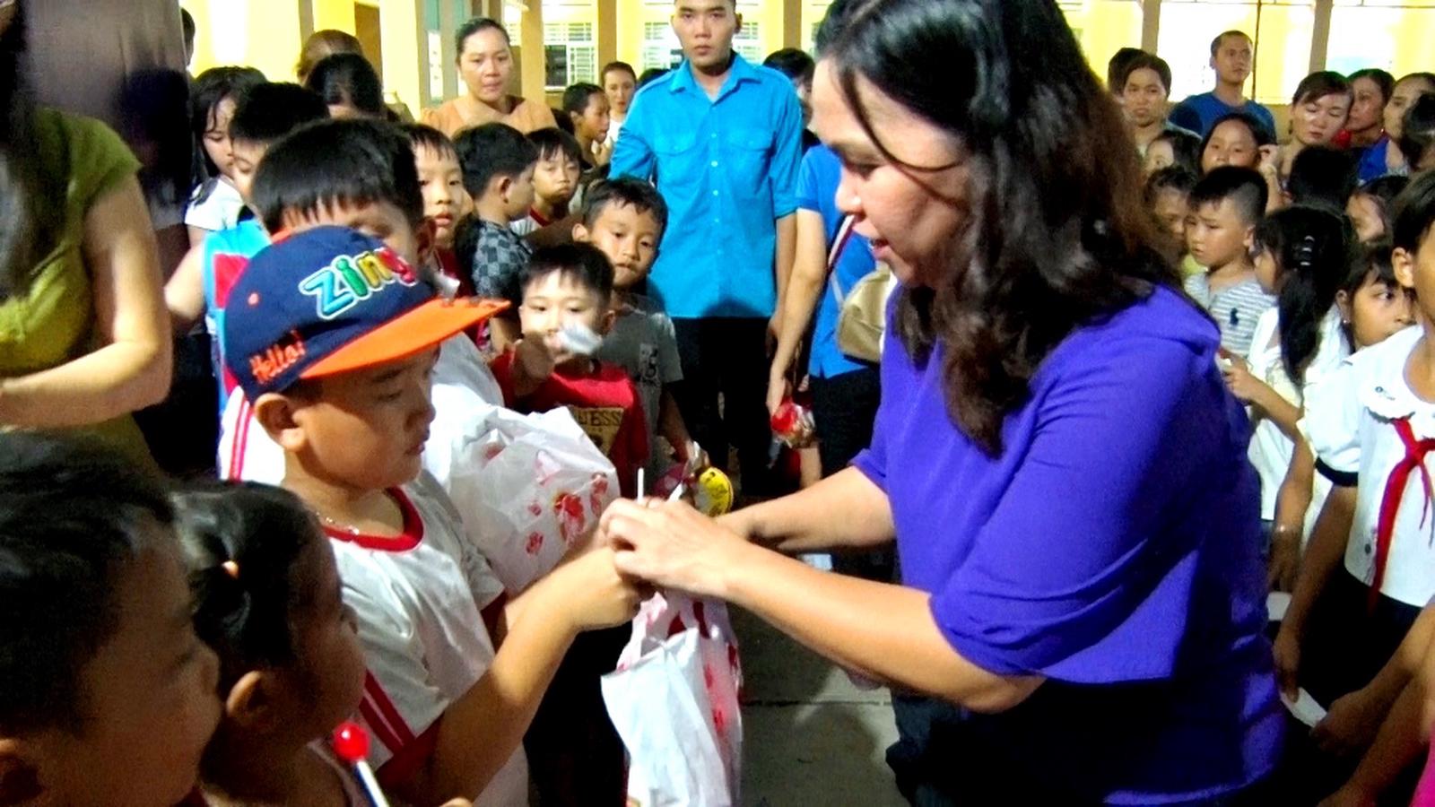 Phó Chủ tịch UBND huyện Long Thành Nguyễn Thị Thùy Linh trao quà Trung thu cho các cháu thiếu nhi
