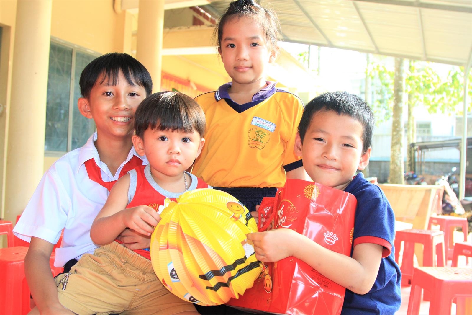 Ngoài ra, mỗi em được trao tặng phần quà gồm lồng đèn và bánh Trung thu.