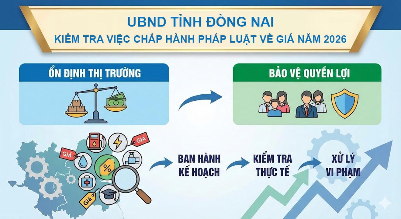 (Thanh tra) - UBND tỉnh Đồng Nai vừa ban hành kế hoạch kiểm tra việc chấp hành pháp luật về giá đối với hàng hóa, dịch vụ do Nhà nước định giá trên địa bàn tỉnh năm 2026, nhằm bảo đảm ổn định thị trường, bảo vệ quyền lợi hợp pháp của người tiêu dùng và doanh nghiệp.