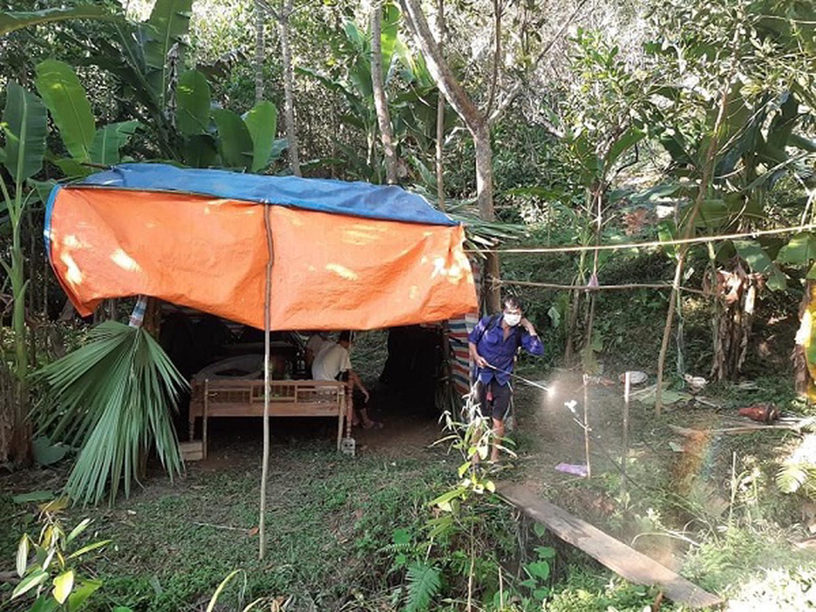 Trước mắt xã ưu tiên thực hiện phương án ghép các nhà gần nhau để dành nhà cho người tự cách ly, nếu nhà ở xa thì dựng lán ở riêng nhà như hộ ông Tr. Việc dựng lán tại địa phương cũng rất thuận lợi vì ở miền núi có sẵn cây que, cây cọ cộng với kỹ năng dựng lều của người dân nên không khó khăn gì, đây mới chỉ là mô hình đầu tiên nhưng bà con hưởng ứng nhiệt tình.