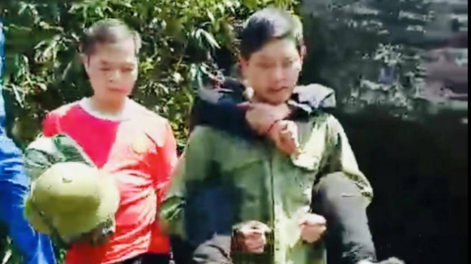 Sức khỏe nạn nhân đã dần bình phục và kể lại quá trình 7 ngày ăn lá dại cầm hơi dưới vực sâu. Ông Dũng, bìa phải, đang động viên bà Liên ổn định sức khoẻ để về nhà. Ảnh: Ban Quản lý Rừng Yên Tử cung cấp