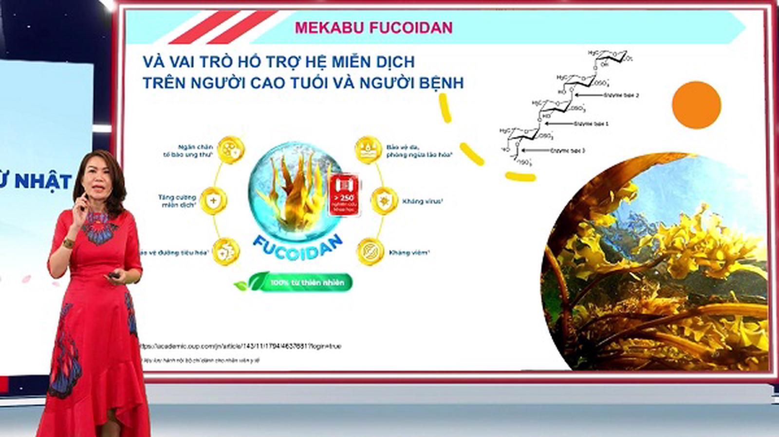 Tại Hội thảo, phần trình bày của các chuyên gia dinh dưỡng từ Nhật Bản đã giới thiệu một loại dưỡng chất rất nổi tiếng ở vùng biển Okinawa có tác dụng toàn diện nâng cao sức khỏe hệ miễn dịch, nhất là với người cao tuổi. Đó là chiết xuất Fucoidan từ tảo nâu – từ lâu được xem là thức ăn truyền thống của người Nhật – nay được chiết xuất và bổ sung vào các sản phẩm dinh dưỡng. Theo các chuyên gia, “kết quả nghiên cứu lâm sàng của Giáo sư, bác sĩ Hirokuni Negishi và cộng sự thực hiện vào năm 2013 trên người cao tuổi Nhật Bản cho thấy hiệu quả của Fucoidan trong việc giúp gia tăng nồng độ các kháng thể và hoạt động của tế bào diệt tự nhiên (Natural kill cell – NK) sau khi kết hợp tiêm vaccine cúm. Nồng độ kháng thể tăng gấp đôi sau 5 tuần tiêm vaccine ở nhóm có bổ sung Fucoidan so với nhóm giả dược.