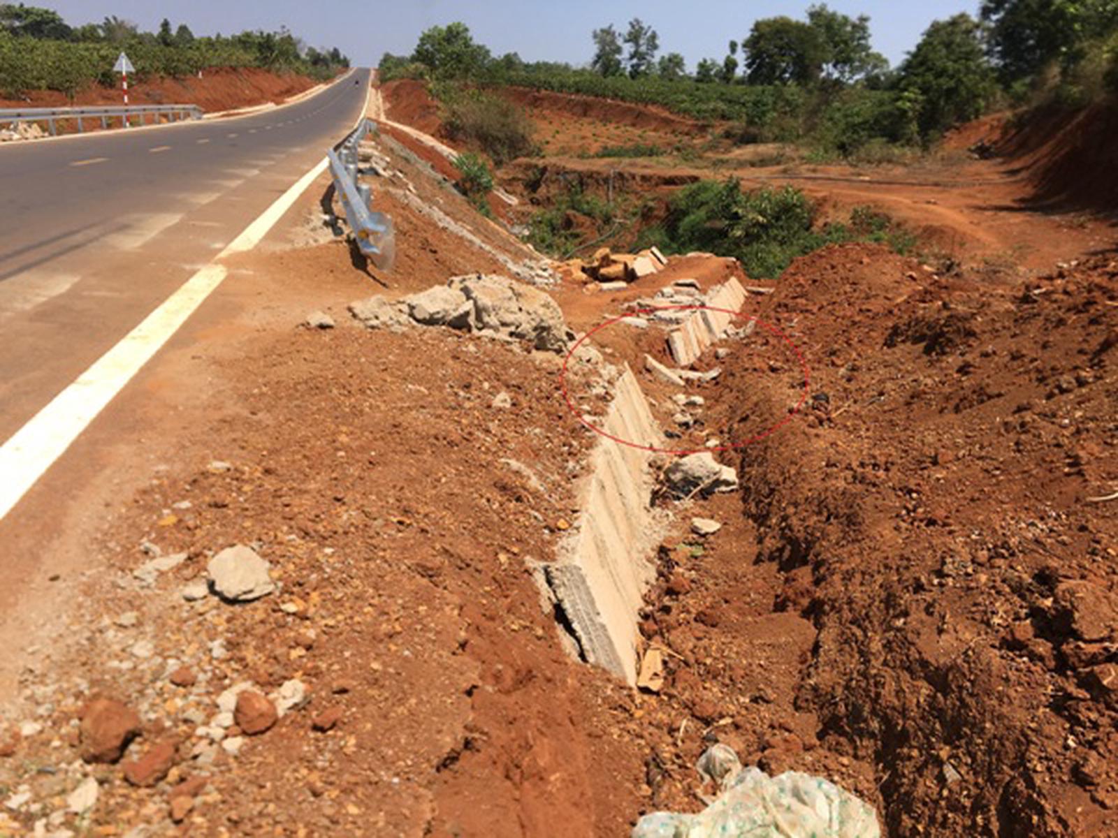 (Thanh tra)- Mặc dù đường tránh Pleiku đã thông tuyến, thế nhưng hầu hết những hạng mục công trình phụ như rãnh thoát nước, cột tiêu… vẫn chồng chất “ngổn ngang”. Thậm chí, nhiều hạng mục công trình xuất hiện dấu hiệu không đảm bảo chất lượng.