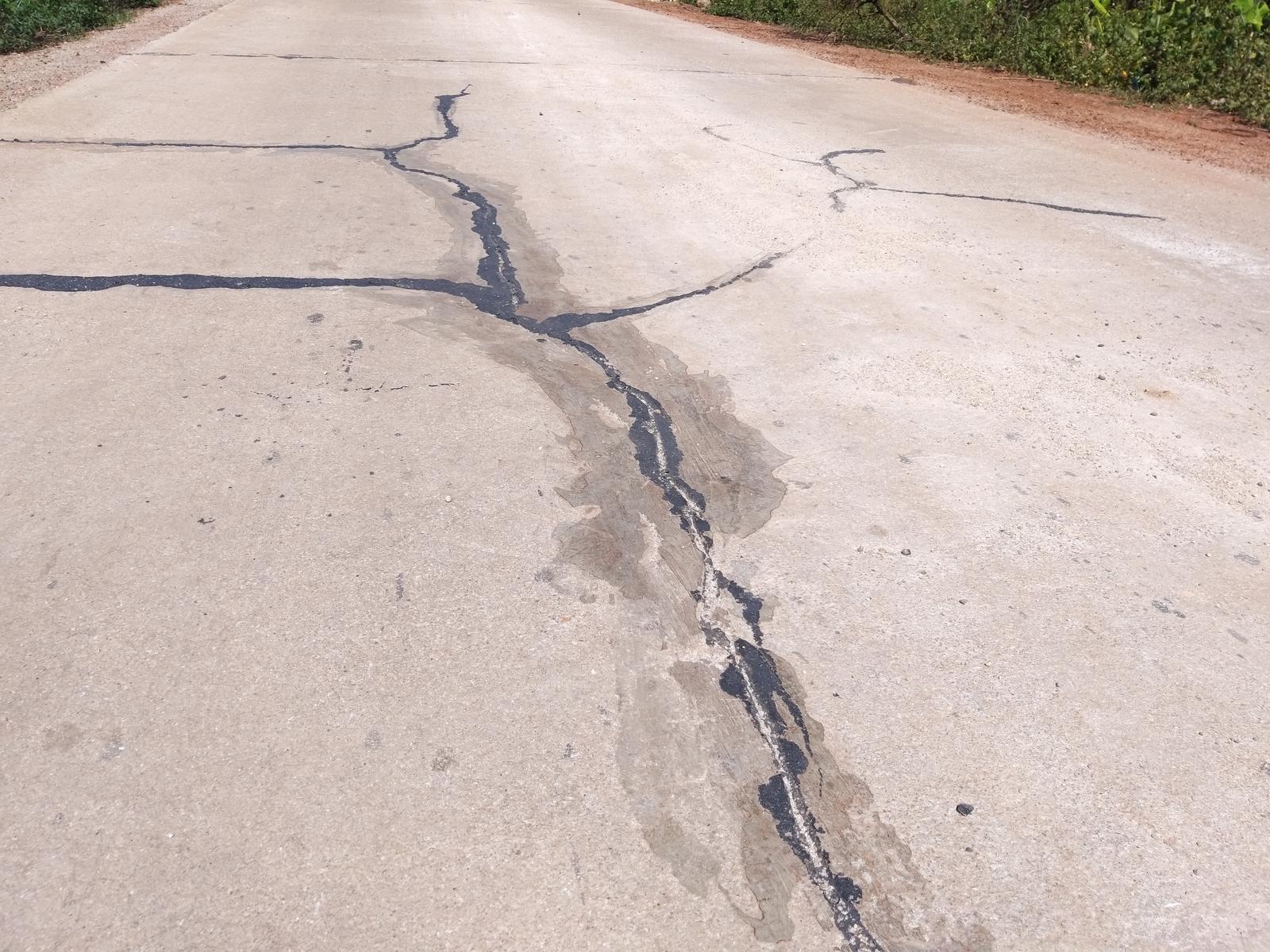 Theo ghi nhận, lớp xi măng phủ phía trên mặt đường đã bị bong tróc, xuất hiện vô số vết nứt kéo dài, hai bên lề đường nhiều điểm bị đứt gãy, gây khó khăn cho các phương tiện đi lại.