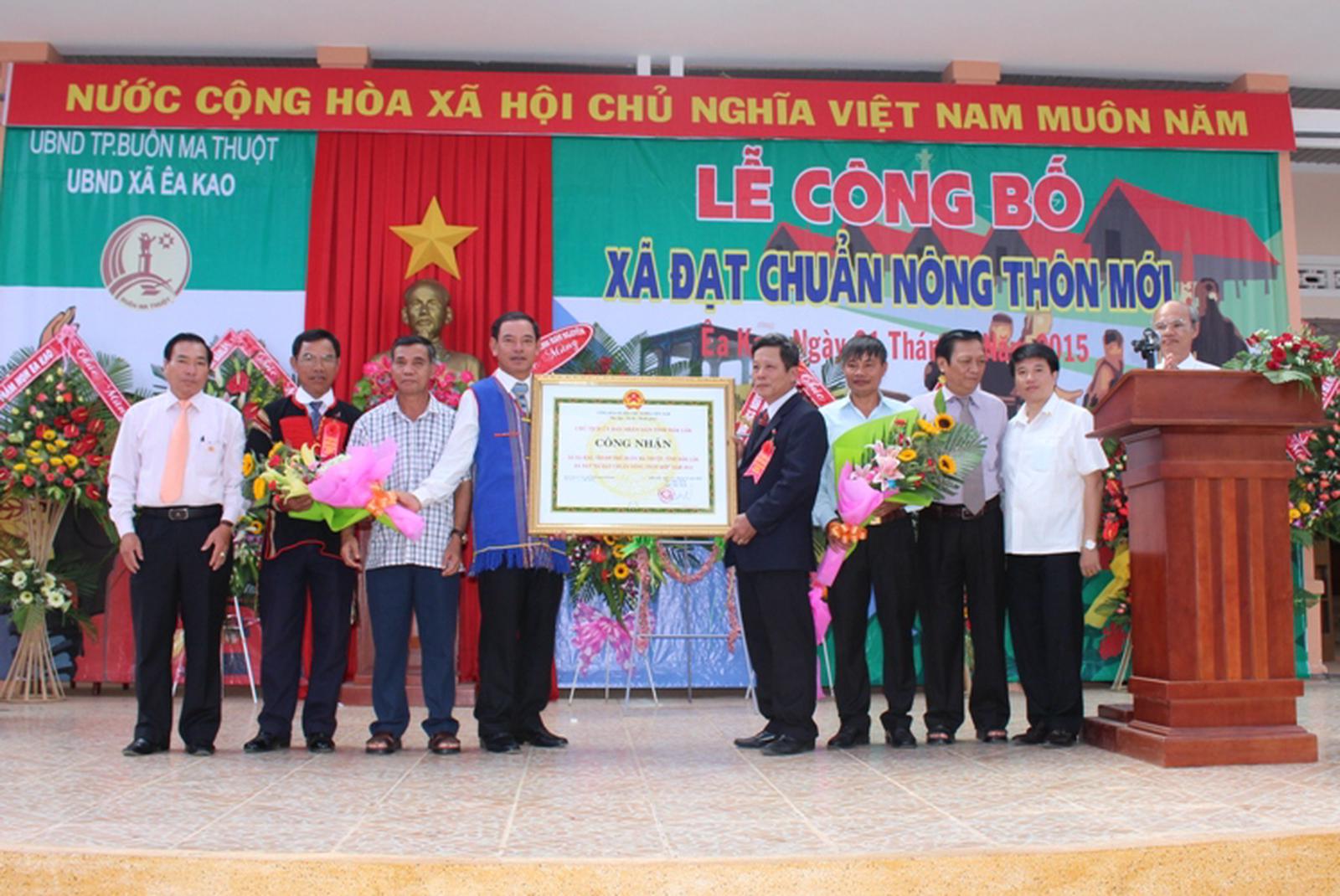 Xã Ea Kao đón nhận quyết định xã đạt chuẩn nông thôn mới. Ảnh: Yên Hà