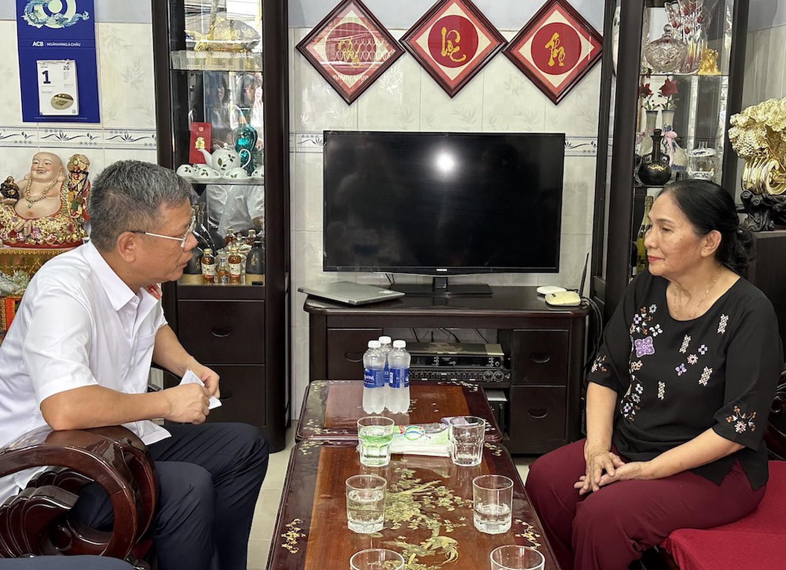 Phó Tổng Giám đốc BHXH Việt Nam Trần Đình Liệu thăm hỏi bà Huỳnh Nữ Tuyết (114/3 KP2, phường Tân Thuận Tây, Quận 7, TP Hồ Chí Minh)