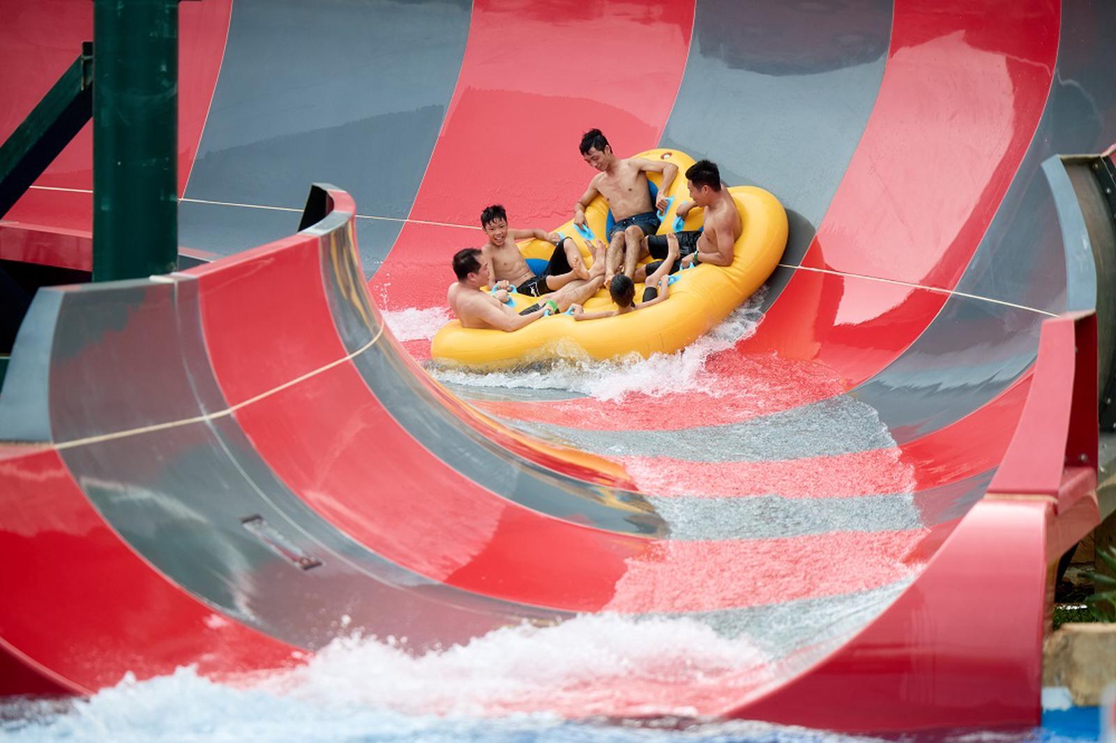 Chỉ khoảng 1 tiếng sau lễ khai trương chiều 30/6, đã có gần 4.000 lượt khách mua vé vào vui chơi tại Sam Son Water Park. Không khí ở đây khá nhộn nhịp và du khách vui chơi cực kỳ thích thú với các trò chơi tại trong khu vui chơi giải trí Sun World Sầm Sơn của Tập đoàn Sun Group.