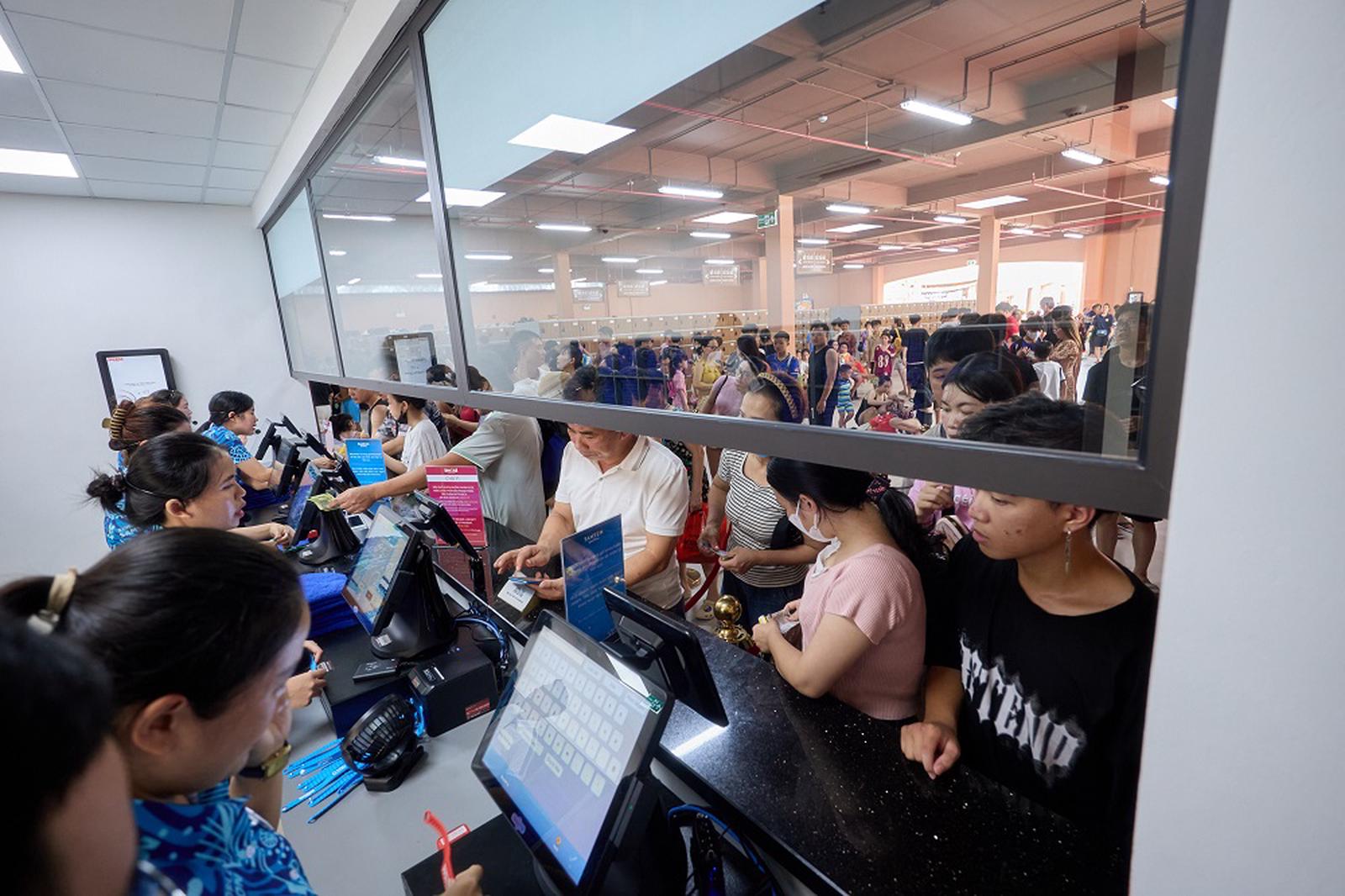 Ngay sau lễ khai trương, khách hàng đã ùn ùn kéo đến mua vé vui chơi. Ảnh: VT