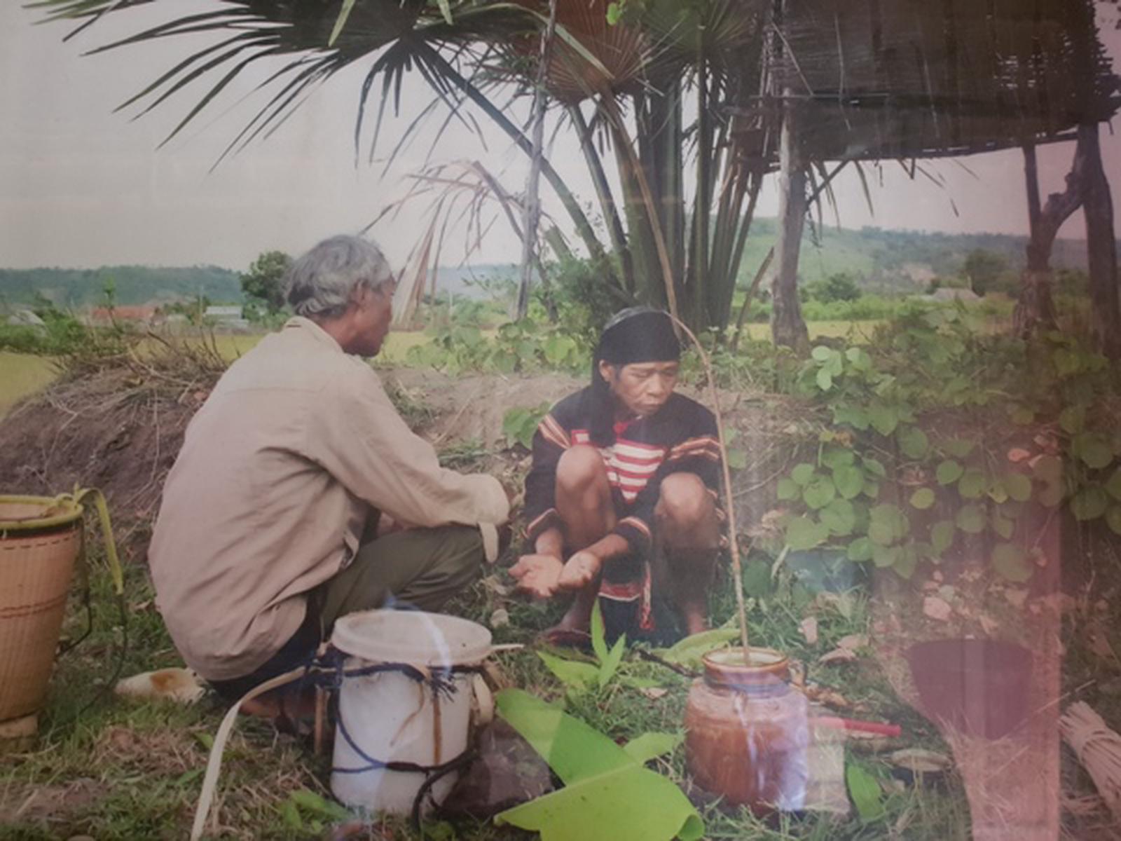 Một trong những nghi lễ rửa gươm trước khi rước do vua Rahlan Hieo thực hiện. Ảnh: PTM