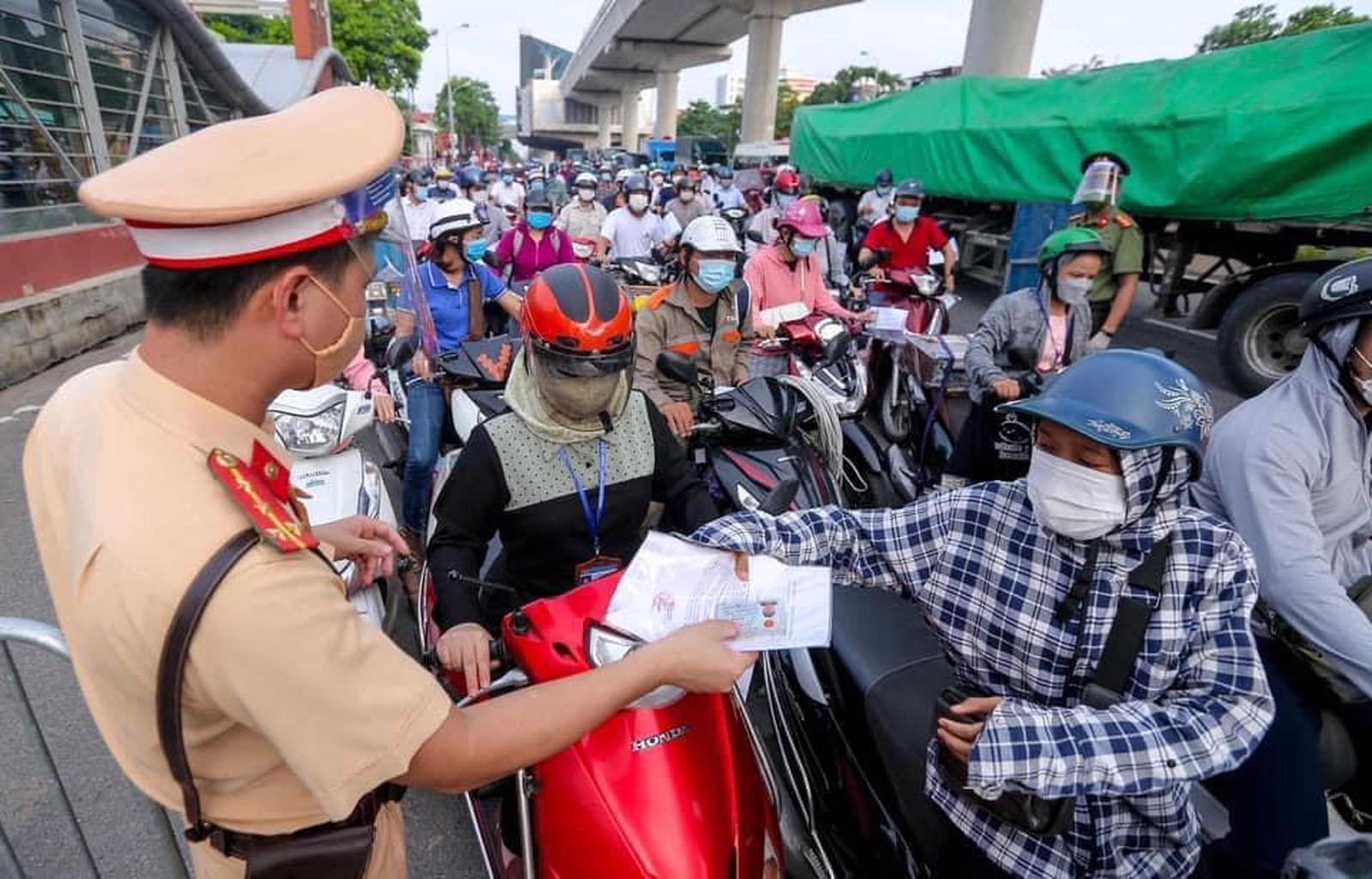 Thực hiện chỉ đạo của UBND TP Hà Nội, để có thời gian chuẩn bị chu đáo cho công tác cấp giấy đi đường theo quy trình mới và tạo điều kiện cho người dân, doanh nghiệp nên trong hai ngày 6 và 7/9, các lực lượng chức năng trên toàn thành phố chỉ thực hiện việc kiểm tra nhắc nhở, tuyên truyền những người ra đường thuộc nhóm được phép nhưng chưa có giấy đi đường theo quy định mới.