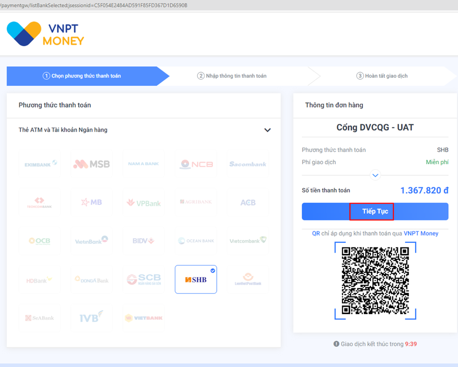 Bước 7.1.1. Chọn Ngân hàng thanh toán