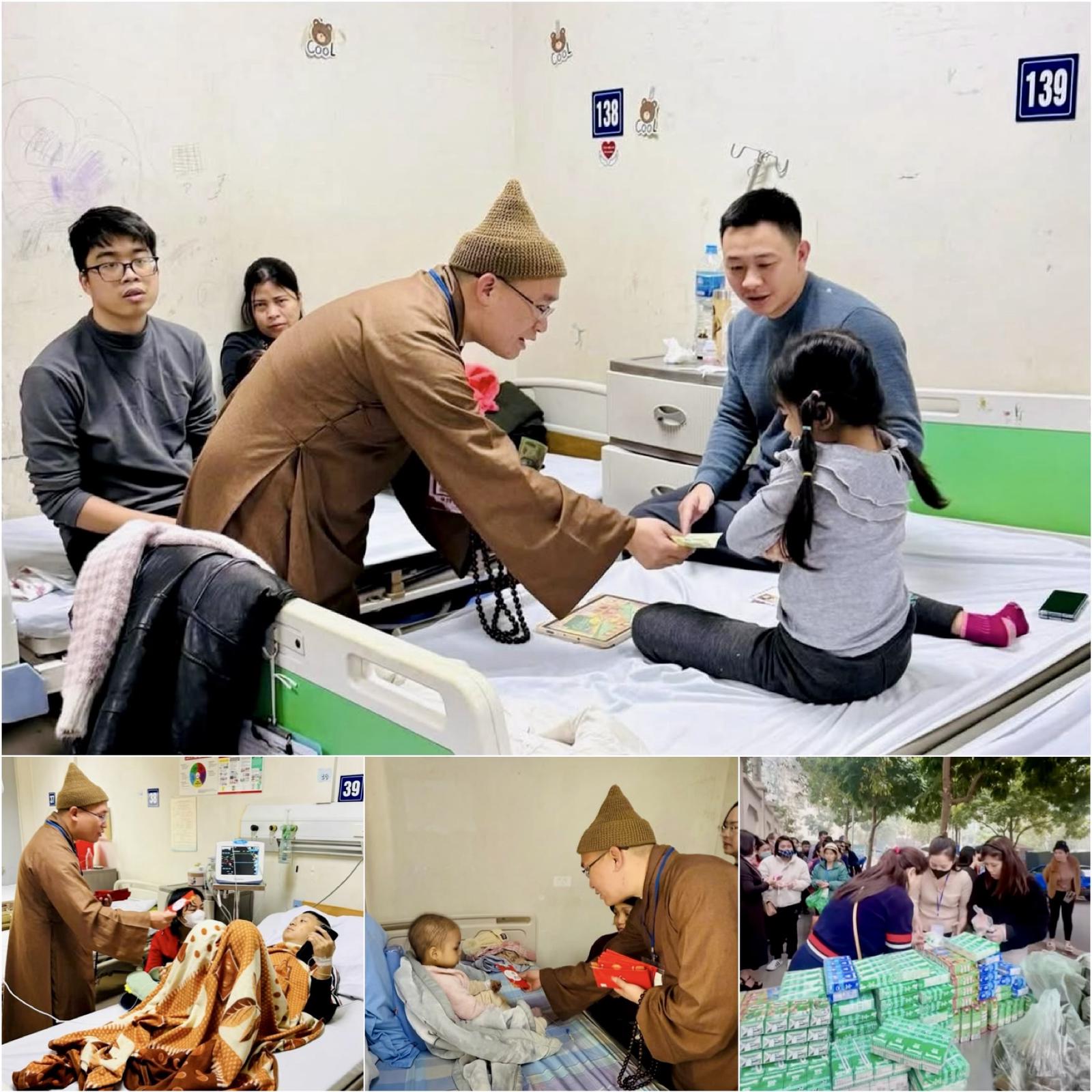Một số hình ảnh Đại đức Thích Quảng Tịnh thăm và tặng quà các bệnh nhi Viện Huyết học - Truyền máu Trung ương dịp Tết. Ảnh do nhà chùa cung cấp