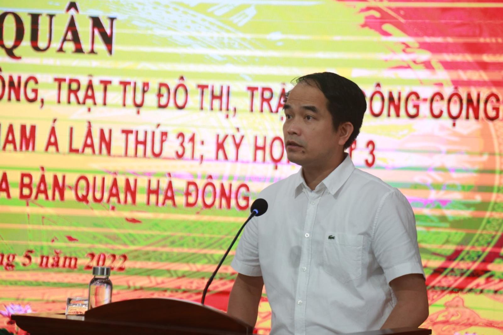 Thượng tá Lê Hữu Hoài – Phó trưởng Công an quận Hà Đông, Phó trưởng BCĐ 197 yêu cầu: “Ban chỉ đạo 197 các phường phối hợp với các cơ quan thông tin báo chí, phát thanh truyền hình đẩy mạnh công tác tuyên truyền, giáo dục nâng cao ý thức tự giác chấp hành pháp luật về trật tự ATGT, TTĐT đối với người dân trên địa bàn quận; công bố các vi phạm lớn, phức tạp hoặc có hành vi tái vi phạm trên các phương tiện thông tin đại chúng. Tuyên truyền vận động một số đối tượng lang thang, cơ nhỡ về các quy định của pháp luật. Không phê duyệt cho các đoàn, nhóm từ thiện tổ chức văn nghệ quyên góp từ thiện ủng hộ người nghèo, người khuyết tật tại các địa điểm công cộng, ngã ba, ngã tư trên địa bàn trong thời gian diễn ra SEA games 31. Đội Thanh tra giao thông vận tải quận Hà Đông phối hợp chặt chẽ với các cơ quan chức năng và các phường để thực hiện có hiệu quả nhiệm vụ được phân công góp phần đảm bảo trật tự ATGT - TTĐT - TTCC trên địa bàn quận”.