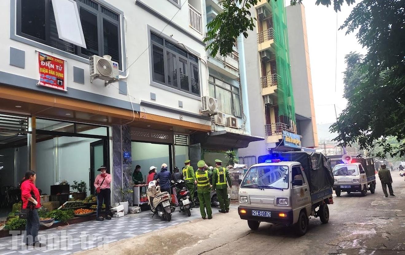 Lực lượng chức năng phường Hồng Hà xử lý chợ "cóc", chợ tạm trên đường Hồng Hà. Ảnh: Vân Nhi