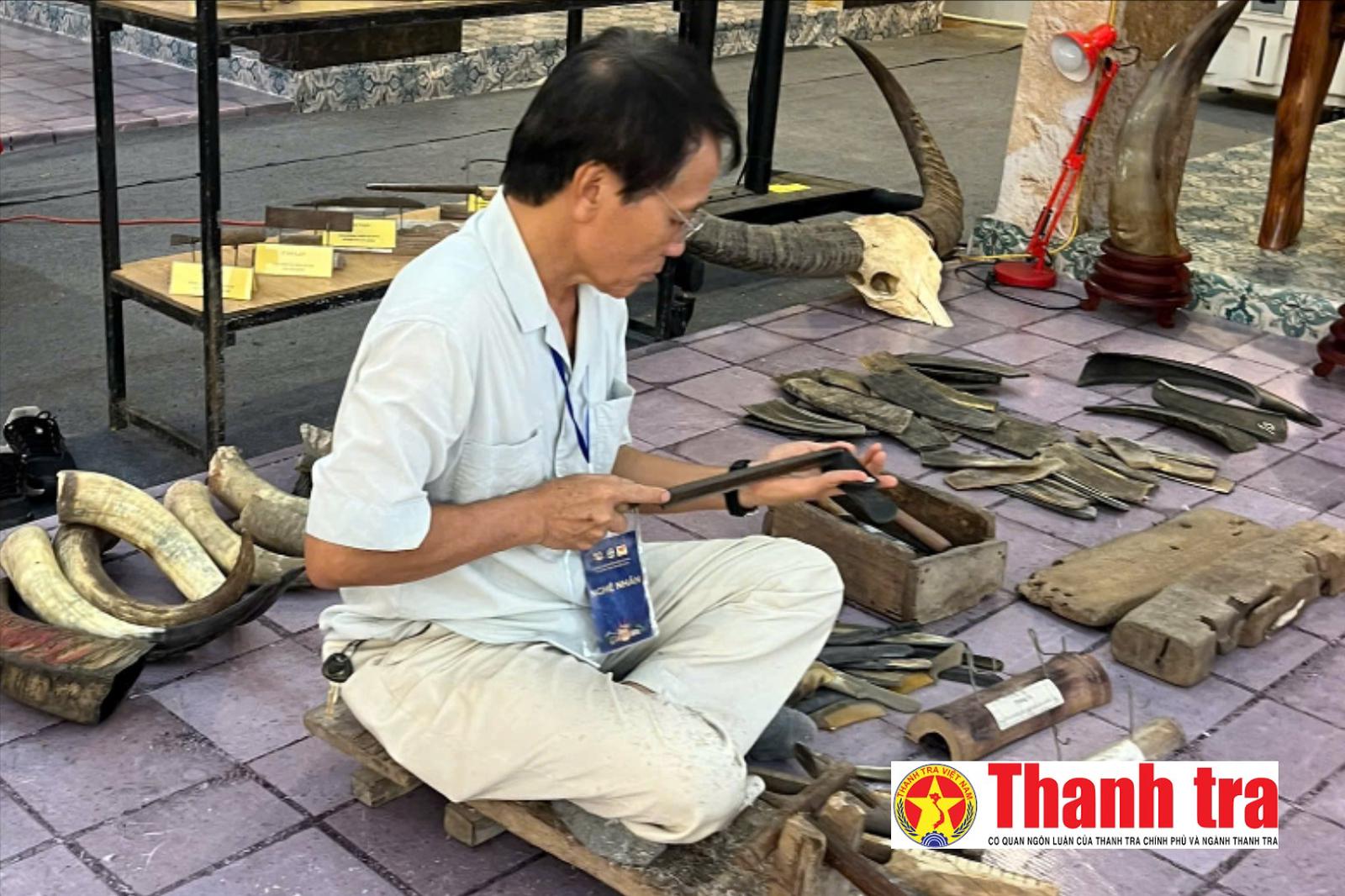 Nghệ nhân, cựu chiến binh Nguyễn Văn Sử (sinh năm 1960) - chủ cơ sở mỹ nghệ sừng Mười Sử, làng nghề Thụy Ứng, TP. Hà Nội.