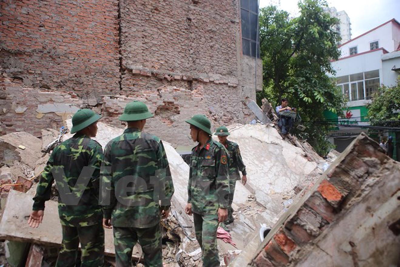 Đống đổ nát tại hiện trường sau khi các nạn nhân được cứu hộ. (Ảnh: Minh Sơn/Vietnam+)