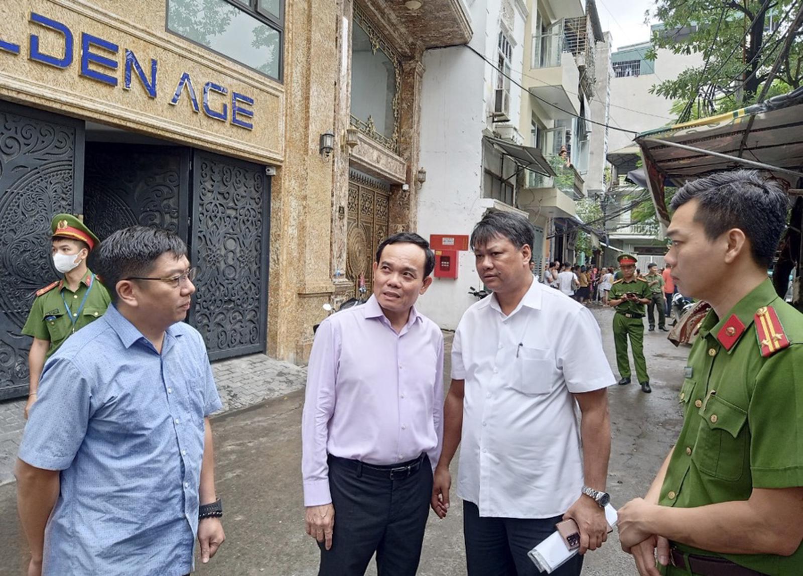 Trước đó, hơn 6h sáng 13/9, Bí thư Thành ủy Hà Nội Đinh Tiến Dũng đã có mặt tại hiện trường, chỉ đạo khắc phục hậu quả vụ cháy.