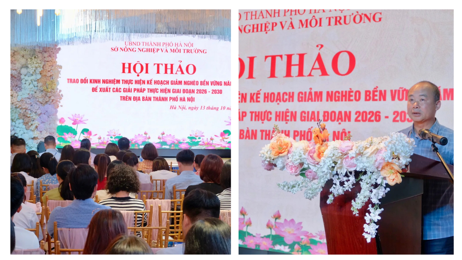 Chiều 13/10, Sở Nông nghiệp và Môi trường Hà Nội tổ chức hội thảo "Trao đổi kinh nghiệm về thực hiện Kế hoạch giảm nghèo bền vững năm 2025, đề xuất các giải pháp giai đoạn 2026 - 2030". Hội thảo là dịp để các đơn vị chia sẻ kinh nghiệm, tháo gỡ khó khăn, thống nhất giải pháp thực hiện hiệu quả chương trình giảm nghèo thời gian tới.
