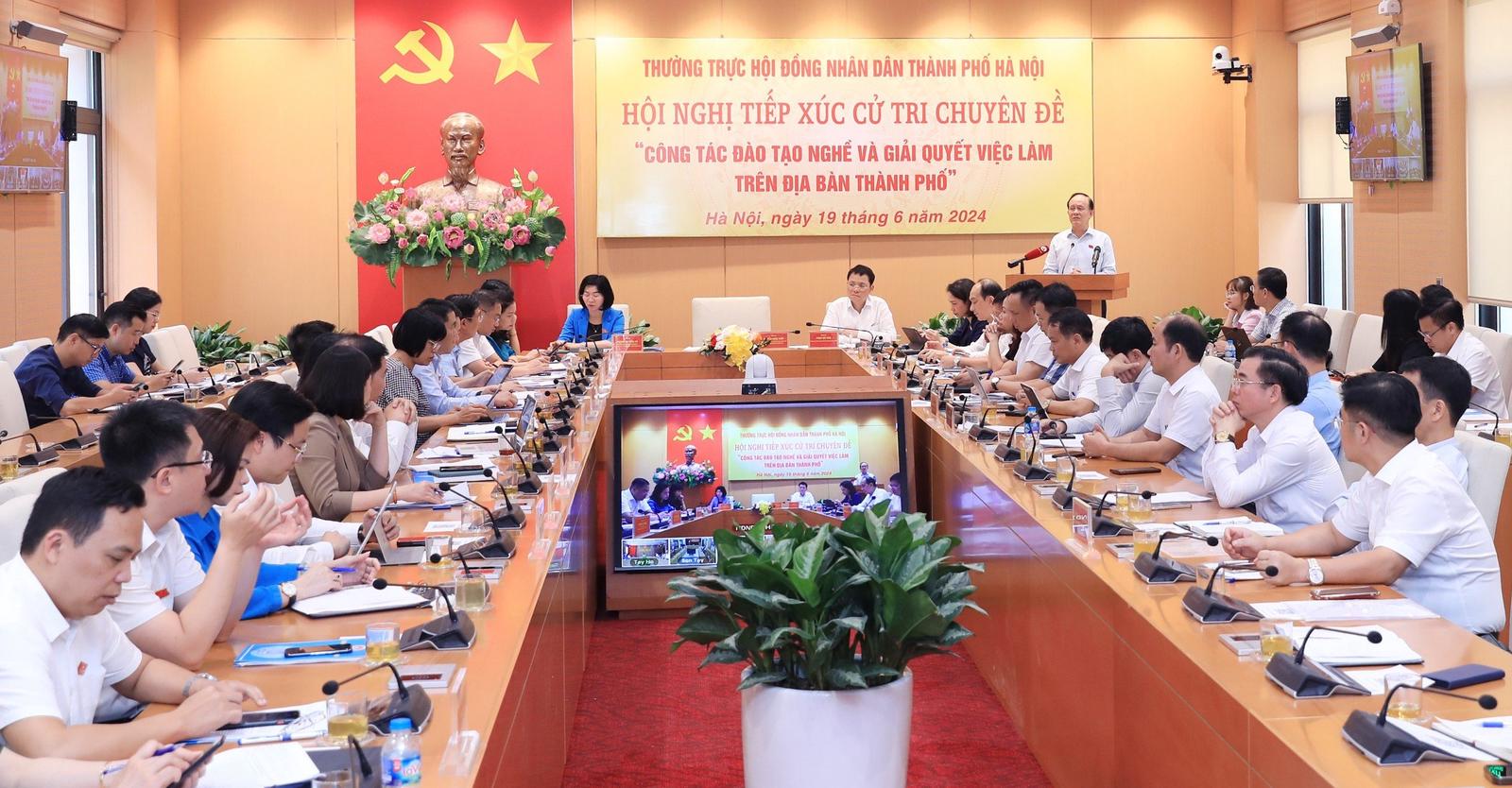 HĐND TP Hà Nội tổ chức hội nghị tiếp xúc cử tri chuyên đề về công tác đào tạo nghề và giải quyết việc làm. Ảnh: HH