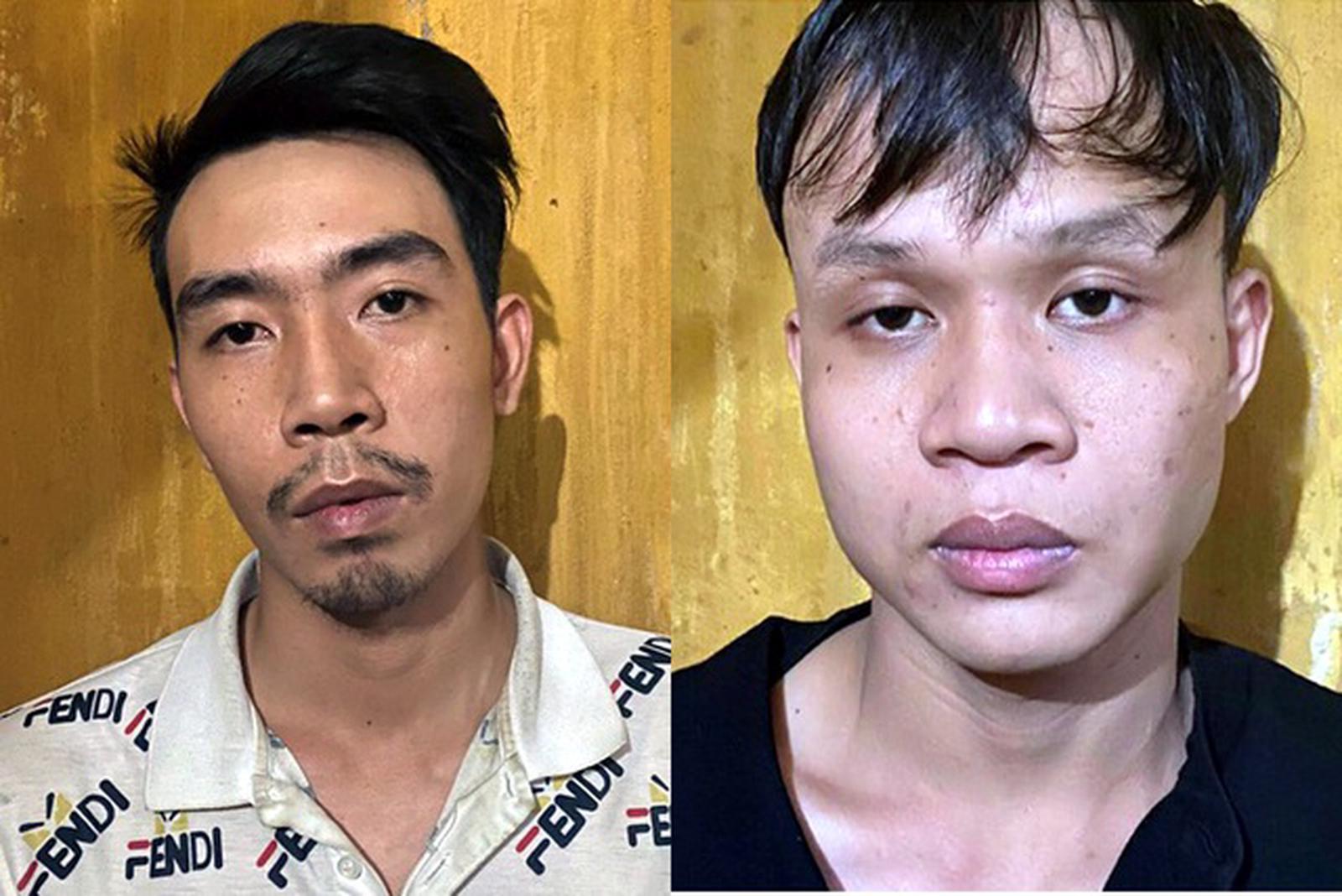 Hai đối tượng Quang và Cường bị bắt giữ trong lúc mang xe trộm cắp đi bán