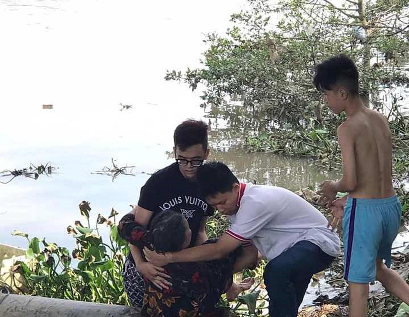 Nhóm học sinh cứu cụ bà 70 tuổi khỏi đuối nước. Ảnh: HP