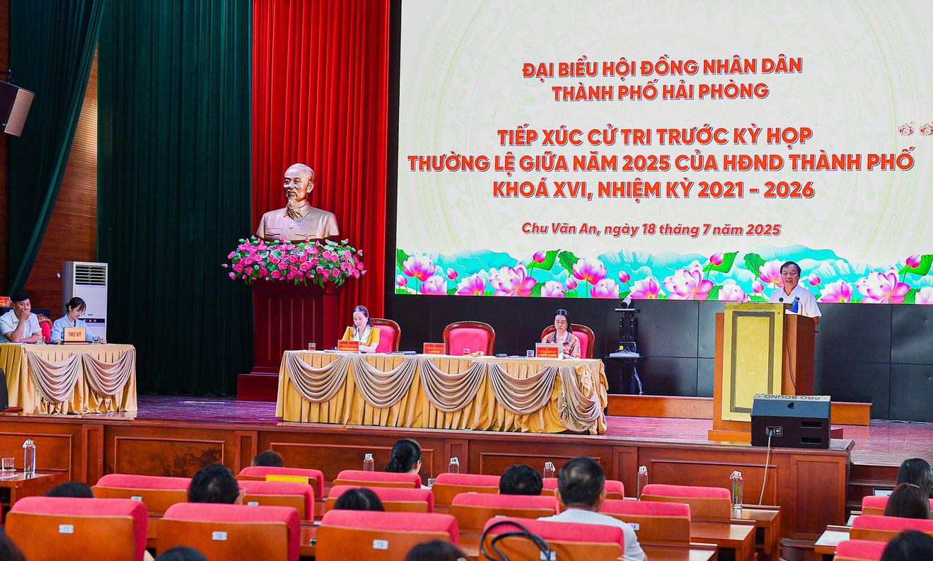 Cử tri cũng được nghe báo cáo dự thảo của UBND thành phố về kết quả thực hiện nhiệm vụ phát triển kinh tế - xã hội, quốc phòng - an ninh trong 6 tháng đầu năm và những phương hướng, giải pháp trọng tâm cho 6 tháng cuối năm 2025.